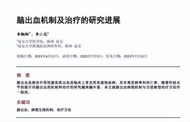 [1]李翱翔, 李小龙. 脑出血机制及治疗的研究进展[J]. 临床医学进展, 2023, 13(7): 11075-11079.