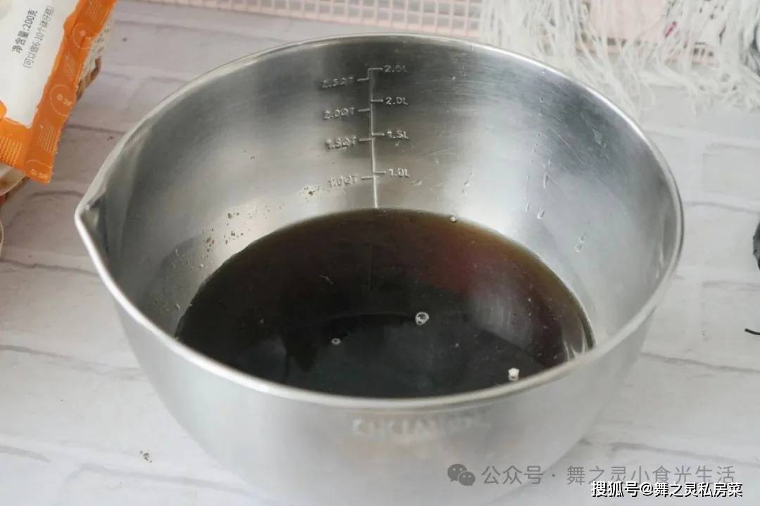 2、搅拌好的红糖水可以过滤一下,去掉红糖渣渣。