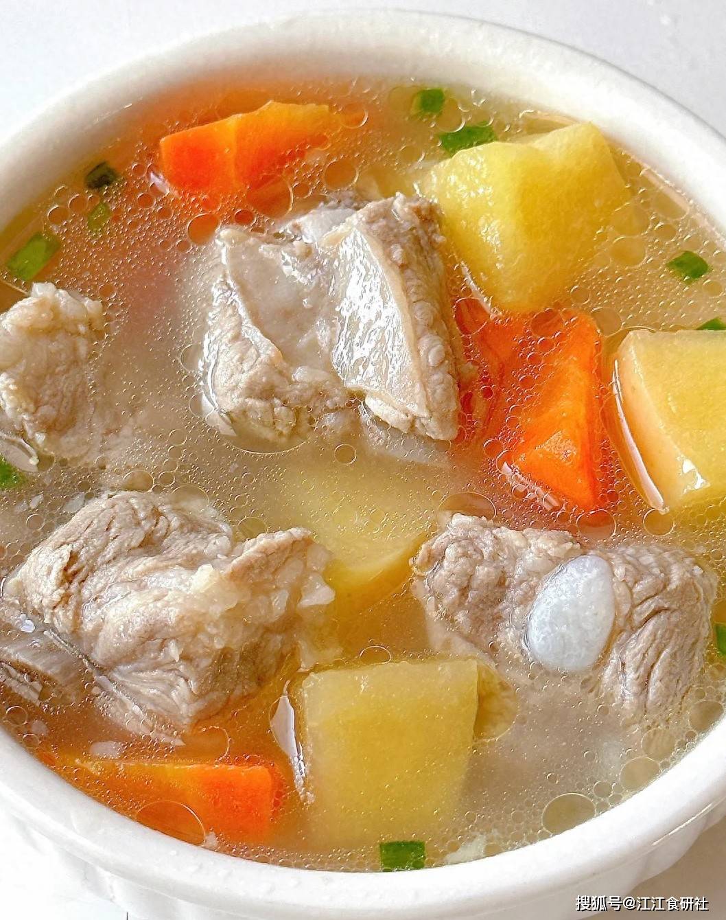 排骨汤喝多了容易糊嘴,但加了苹果,汤色清亮,入口非常爽利。