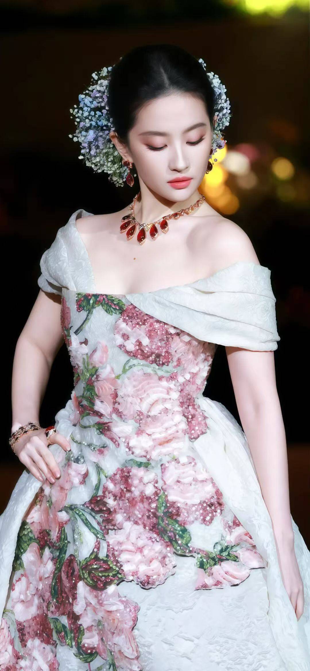 刘亦菲这组「油画裙」大片绝了!红宝石项链配鲜花头饰,活脱脱从画里走出来的公主!