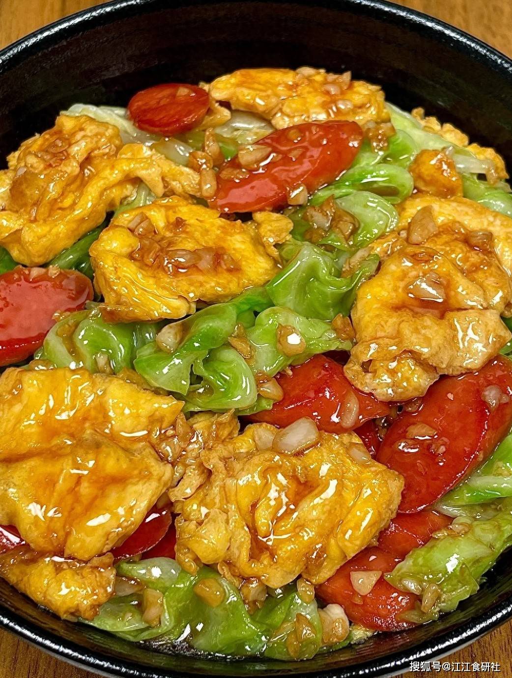 包菜脆甜,鸡蛋嫩滑,火腿肠焦香。