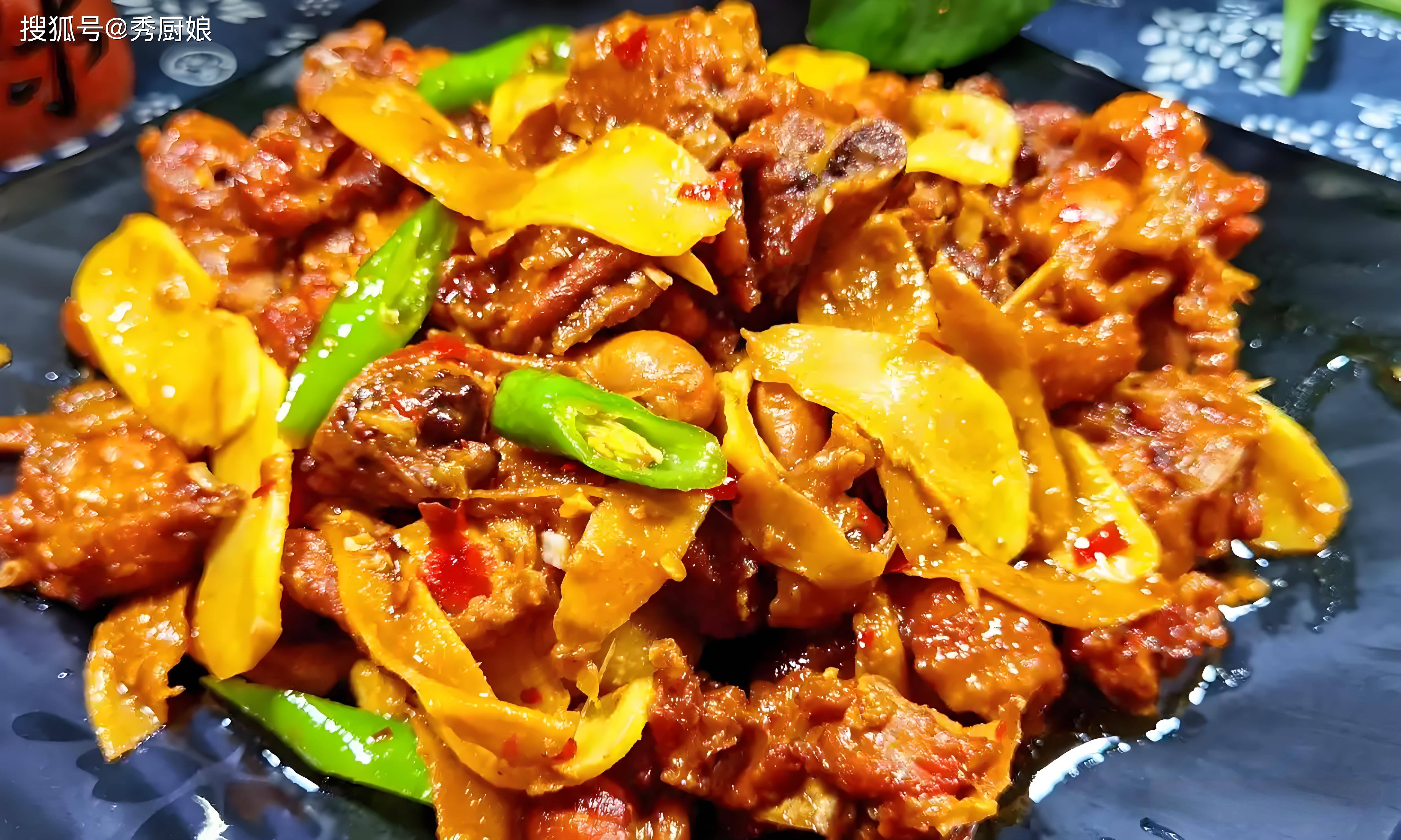 这道菜用的是嫩嫩的仔姜,辣味温和,和鸭肉一起烧,既能去腥解腻,又能让鸭肉带上姜的清香,特别开胃。