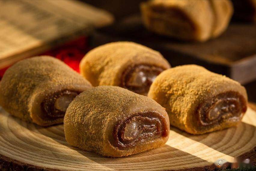 做法也简单:黄米面蒸熟擀片,抹豆沙卷成卷,滚层炒香豆面切块,撒白糖即成。
