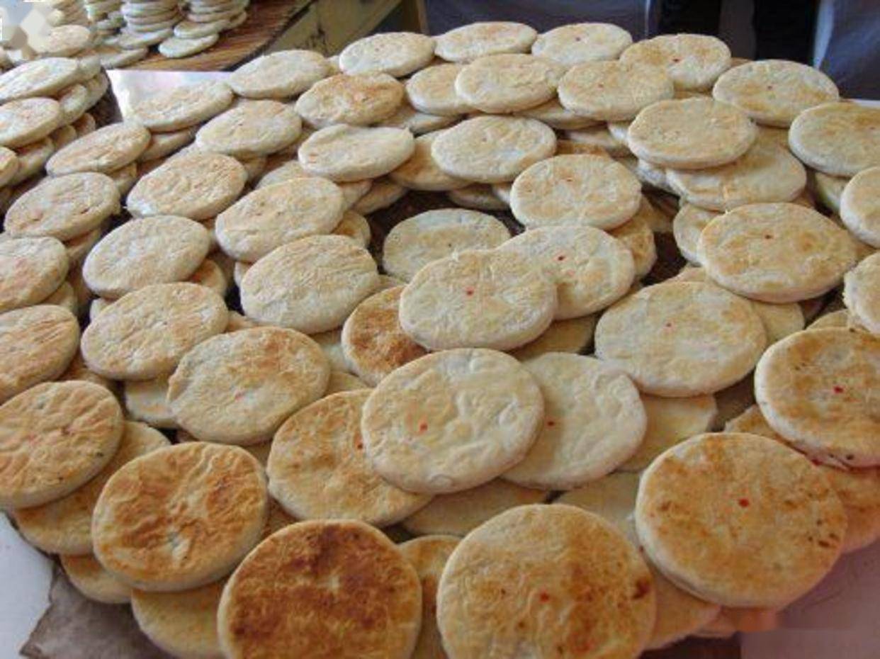 和面分油酥面和水面,包上蒸熟的白荞面混着糖、香油、果仁的馅,擀成薄饼烙七分钟,出锅“倍儿香”!
