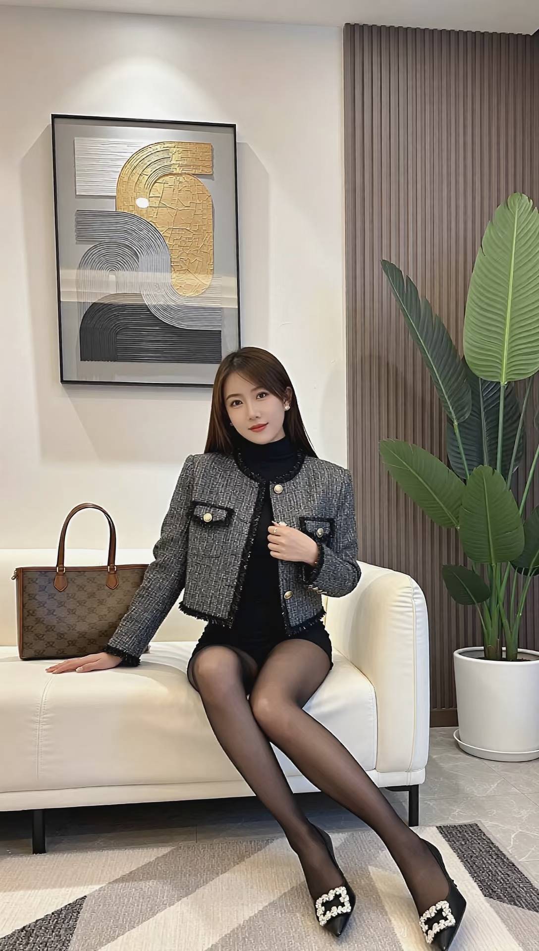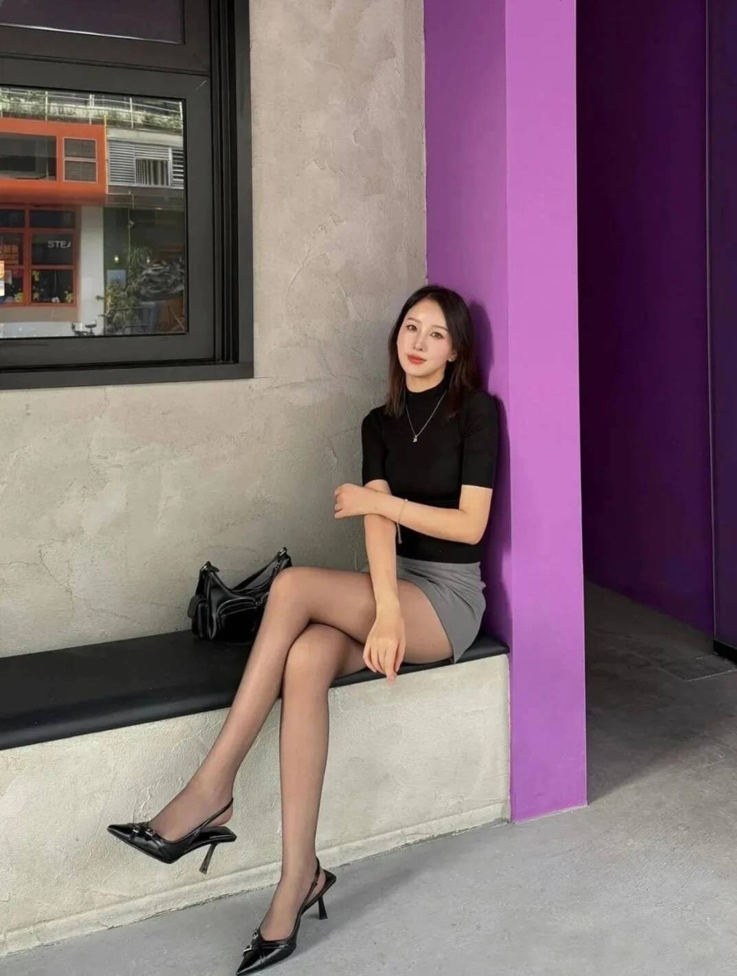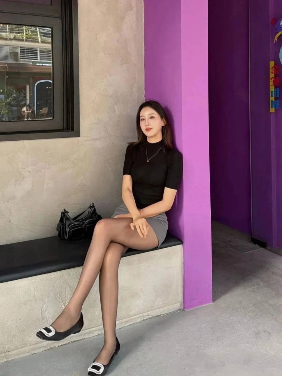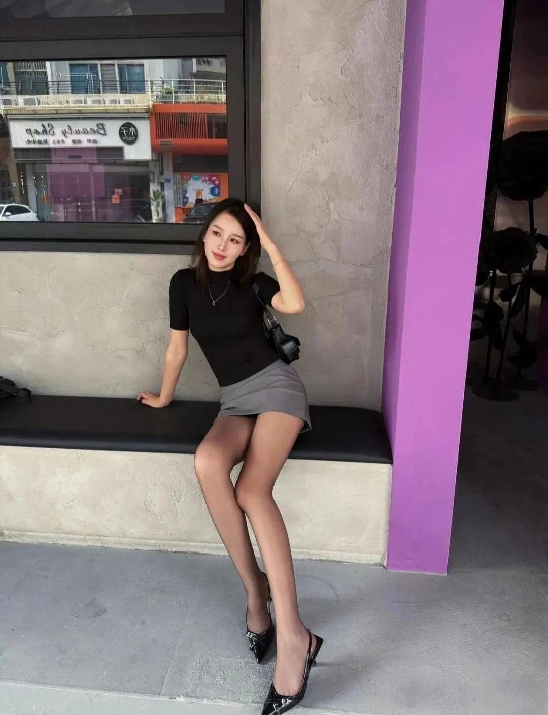 油光袜紧贴,长腿更显得,