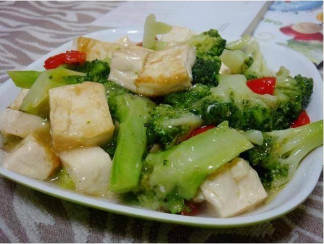 材料:西兰花、豆腐(用盐水豆腐 不用嫩豆腐)