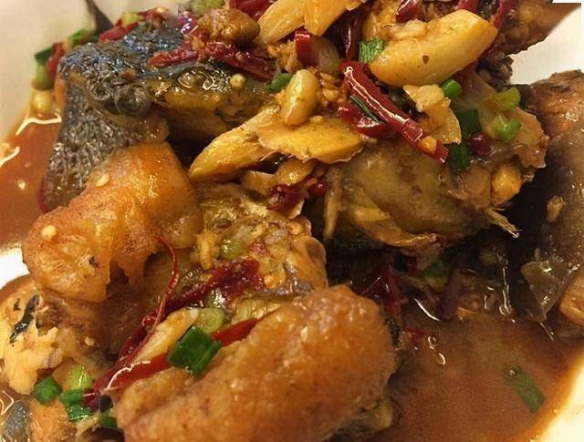 3、把鲶鱼拿出,锅里再放油,放姜,蒜,大葱爆香,再放煎好的鲶鱼,加老抽稍微翻抄上色,加水或者高汤没过鲶鱼,加进料酒焖煮