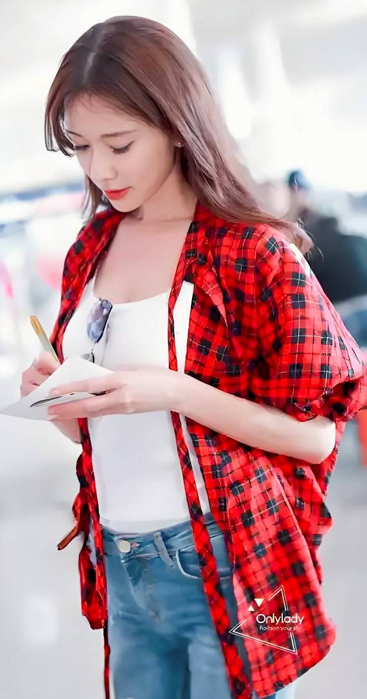 从容应对焦点:即使引发围观拍照,她仍保持亲切互动,如主动与粉丝合影,将机场转化为个人风格秀场。