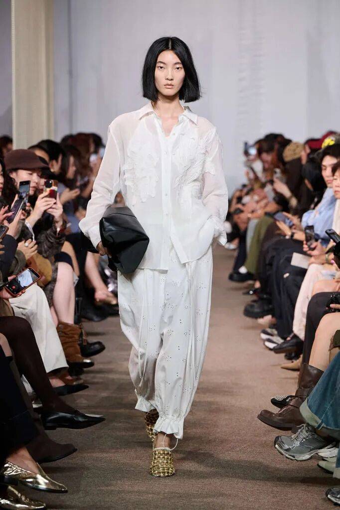 "本季最令人印象深刻的是材质实验:竹基面料首次亮相,完美诠释了'韧性'概念;轻量再生纤维与挺括亚麻的结合,在柔韧与筋骨间找到理想平衡;而多纱线针织实验则创造出既有力量又有柔软感的独特质感。"
