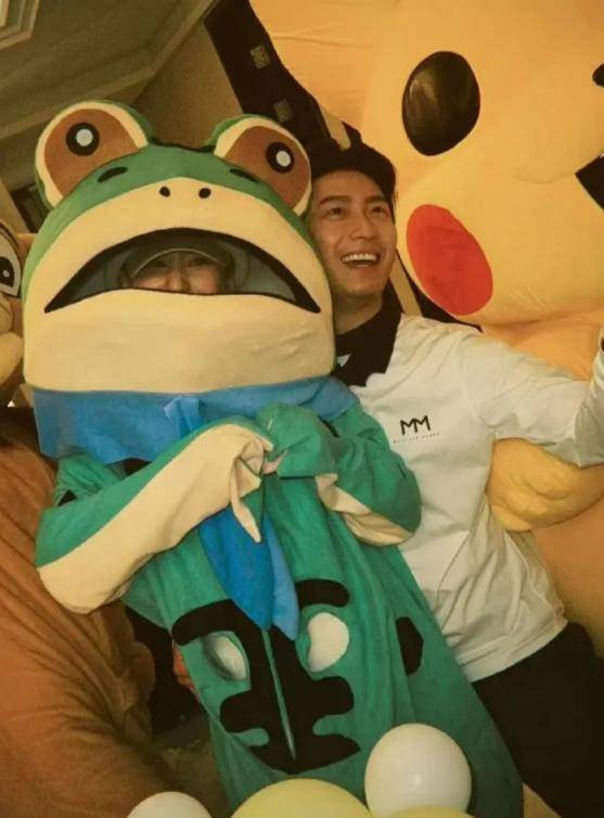 窦骁生日时,何超莲穿青蛙服搞怪庆生,亲密搂抱吹蜡烛的画面甜度爆表。