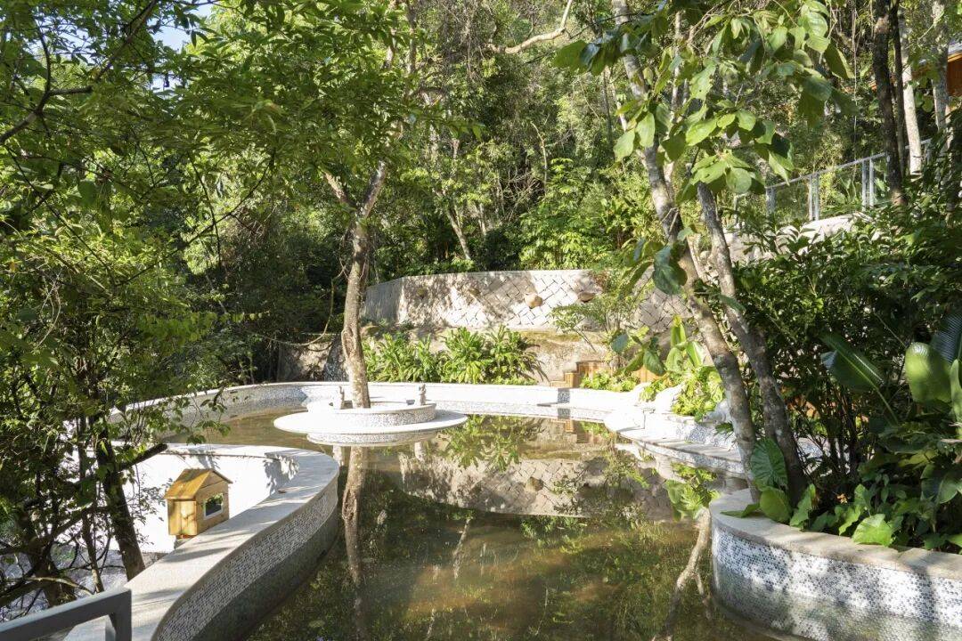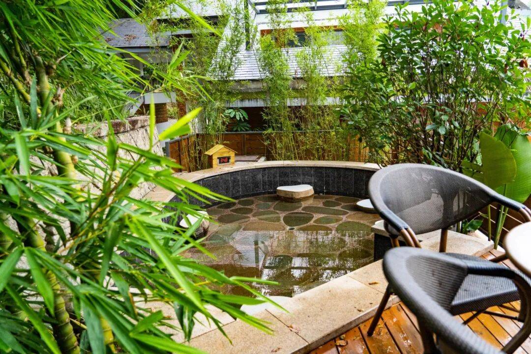 改造升级:通过系统改造与产业升级提高游客体验感。修缮步道,十多个特色泡池隐匿在溪谷与森林之间,温泉区利用峡谷地貌,泡池或以天然岩石垒砌与山体融为一体,或设计为无边形态引入远处青山轮廓,搭配绿植提供私密空间,全新升级水循环系统让泉水更洁净,呈现“溪谷汤泉”。