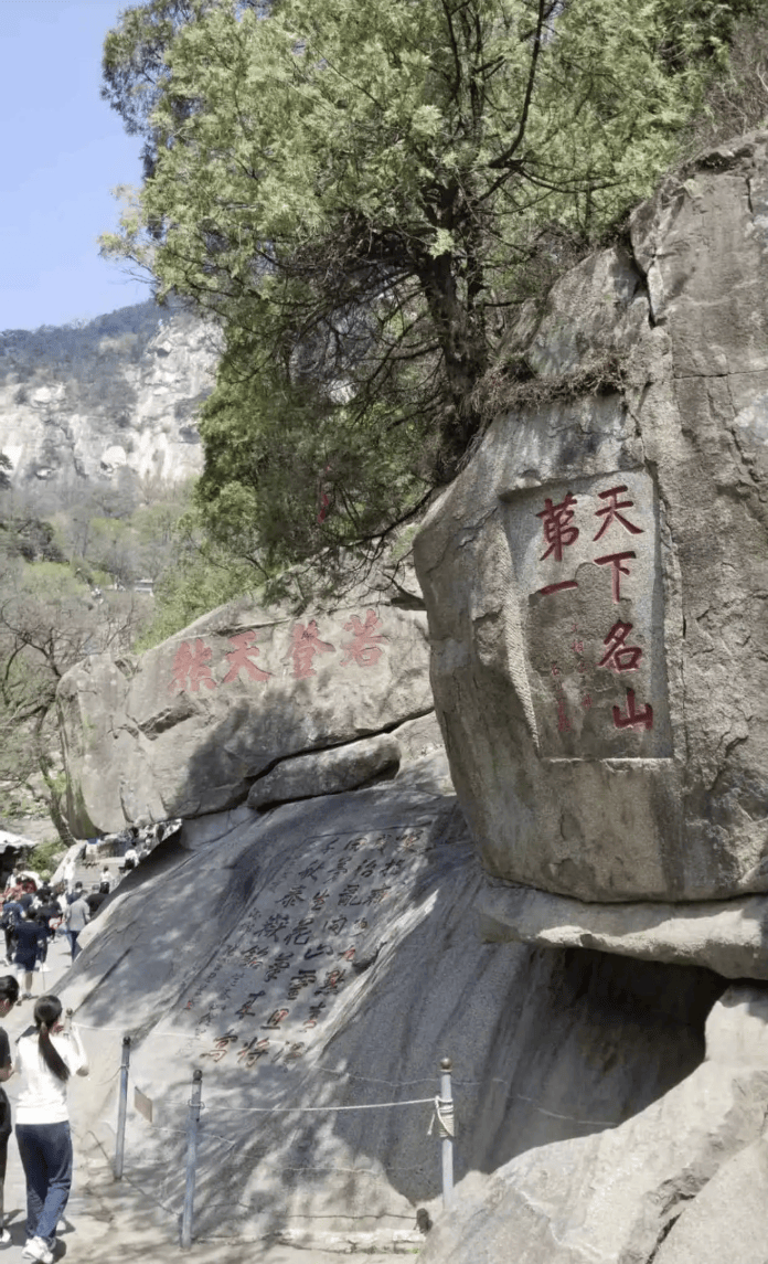 更绝的是,泰山2000余处不同历史时期的摩崖石刻,大多刻在天然的花岗岩悬崖面(节理面)上,登山步道两侧,俯拾皆是,与峰峦叠嶂、奇石陡崖融为一体,构成中国天然书法展览大观园,亦为“五岳之最”。