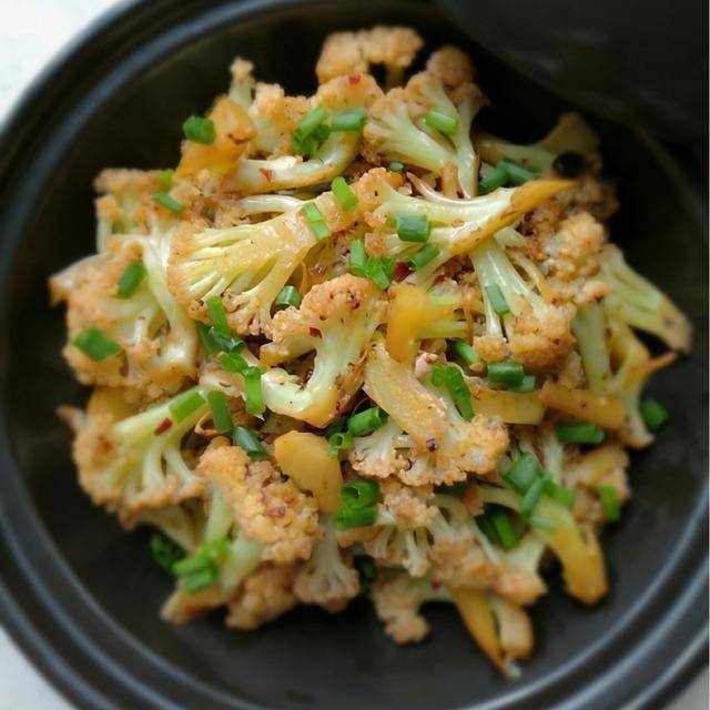 干锅炖制:转入干锅后用小火慢炖,让花菜慢慢吸收调料滋味,比直接装盘更香。