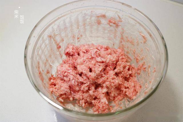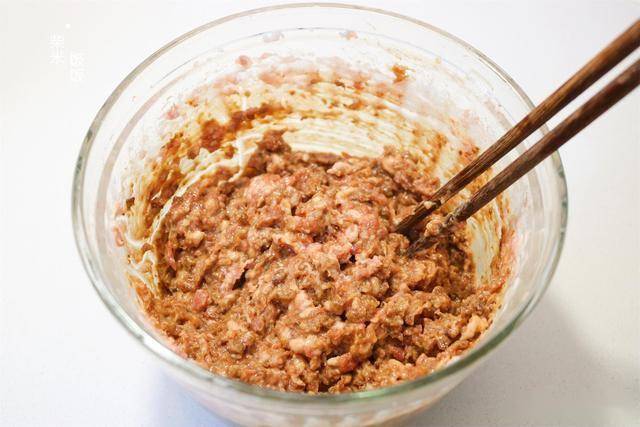 6,剩下的一半肉馅,加点凉开水,搅拌至完全被肉馅吸收。
