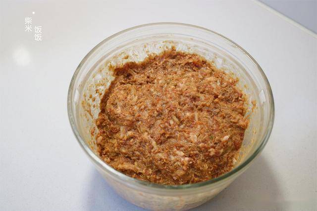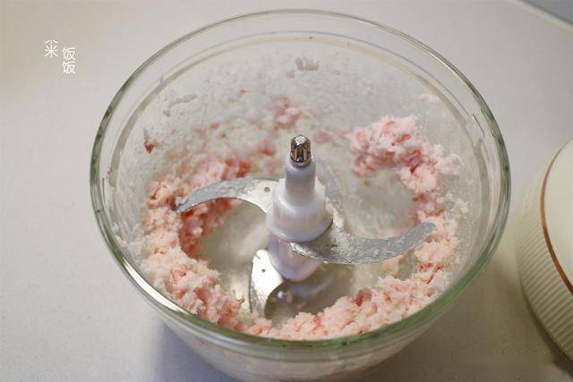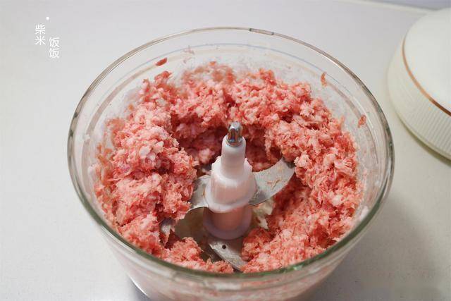 3,接着再把瘦肉放进来,和肥肉一起再绞成肉糜就可以了。肥瘦比例大概就是2:8。