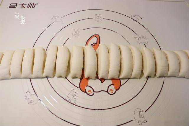 11,面团发好,稍微揉一揉排气,分成24等份。