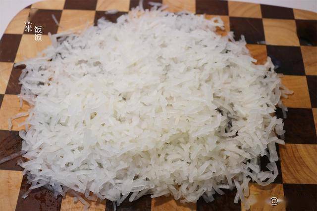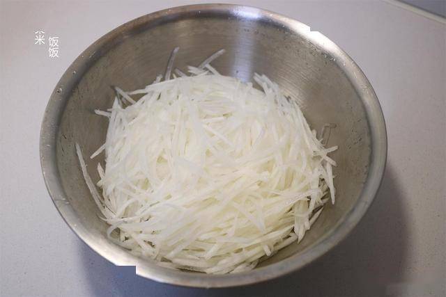 1. 切配:白萝卜去皮后擦成细丝或切成小丁(根据口感需求)。