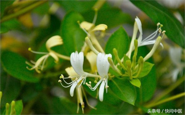 金银花味甘性寒,能清热解毒、疏散风寒,泡茶喝能缓解喉咙肿痛,做成金银花米醋膏,能缓解咽炎症状。