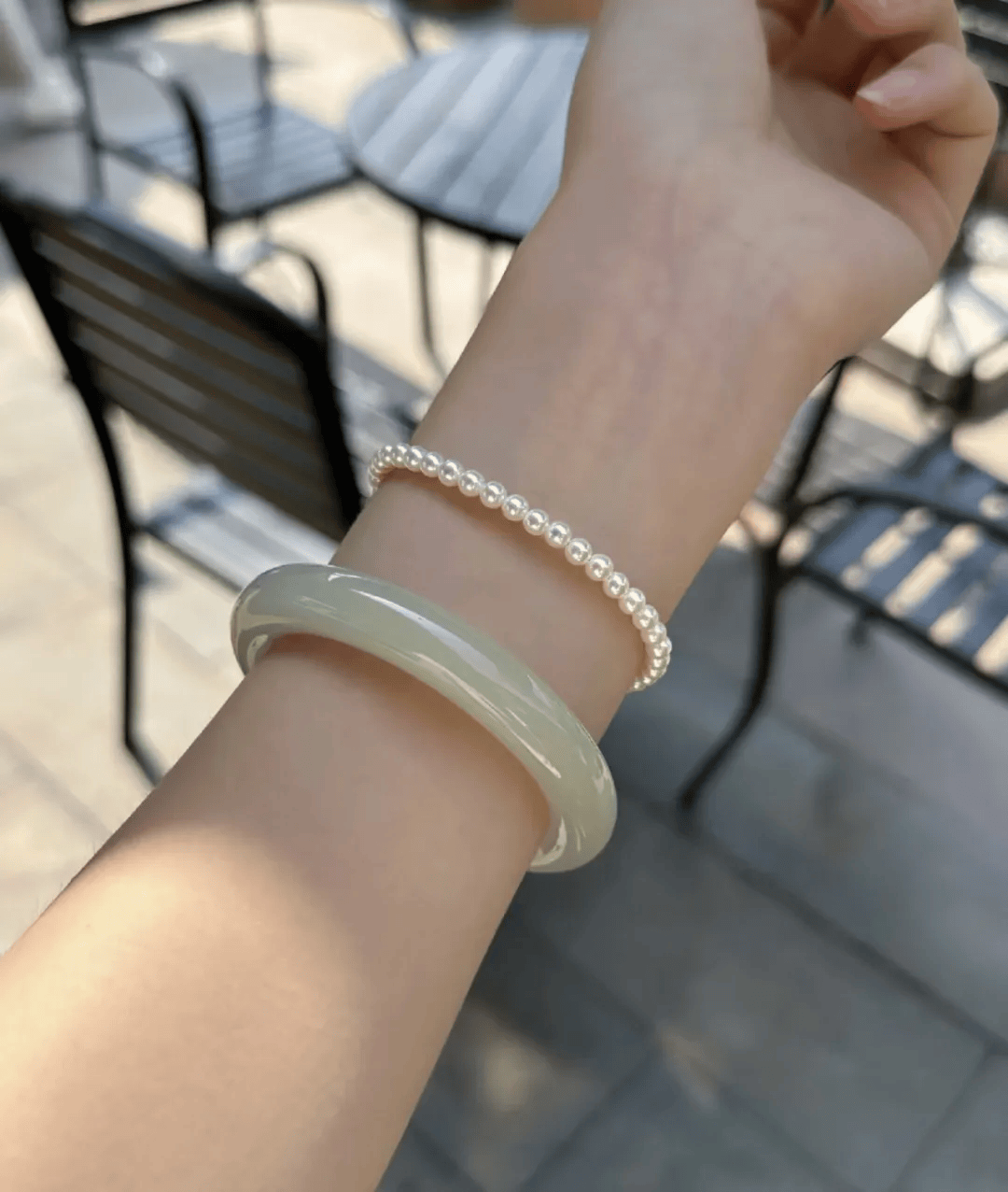 跟玉石类的手镯适配度也很高,又温婉大气,又有一股中式贵气感。