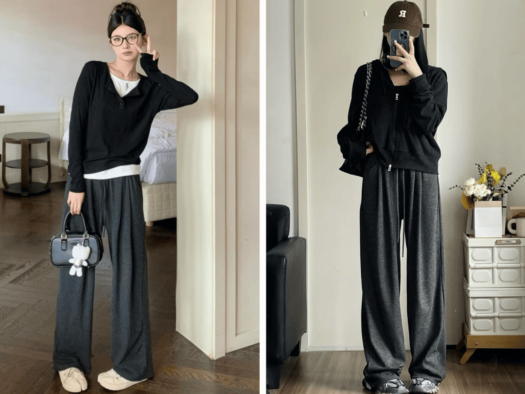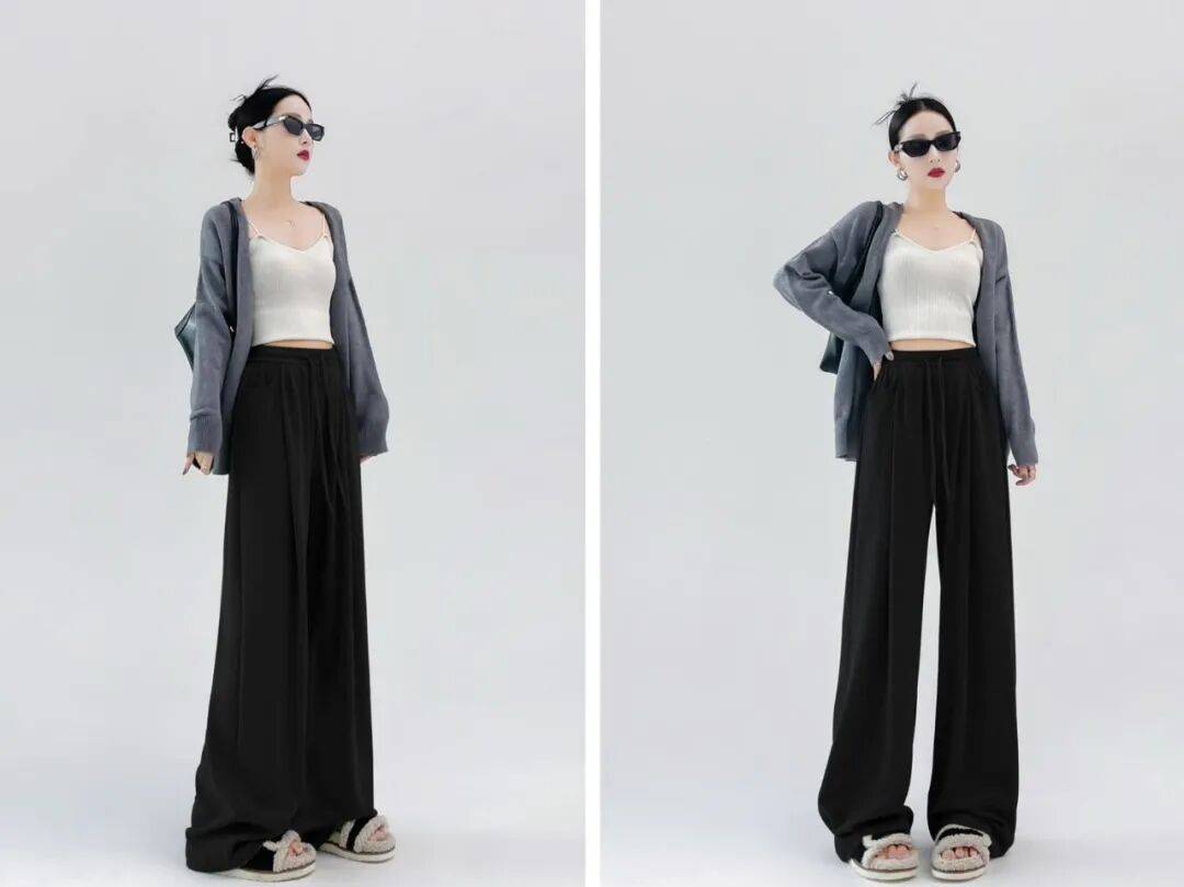 普通阔腿裤虽然宽,但太松太塌,走几步就显得拖沓没精神;修身小直筒又过于紧绷,一坐下就勒大腿、勒小肚子,还会暴露腿型。