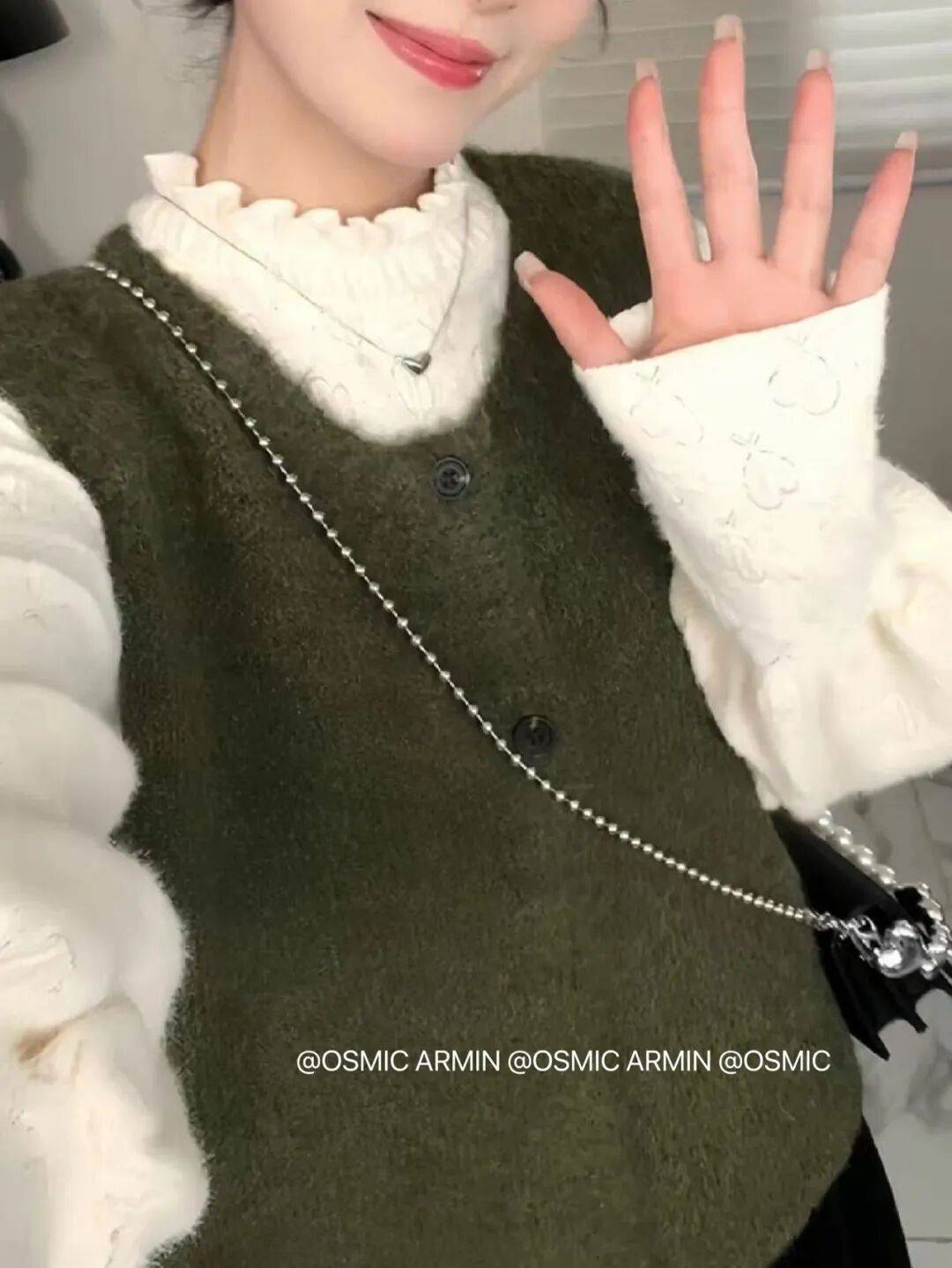 早秋早晚微凉时,单穿是温柔毛衣,叠穿是百搭马甲,冬天更是大衣、羽绒服里的复古腔调时髦内搭。