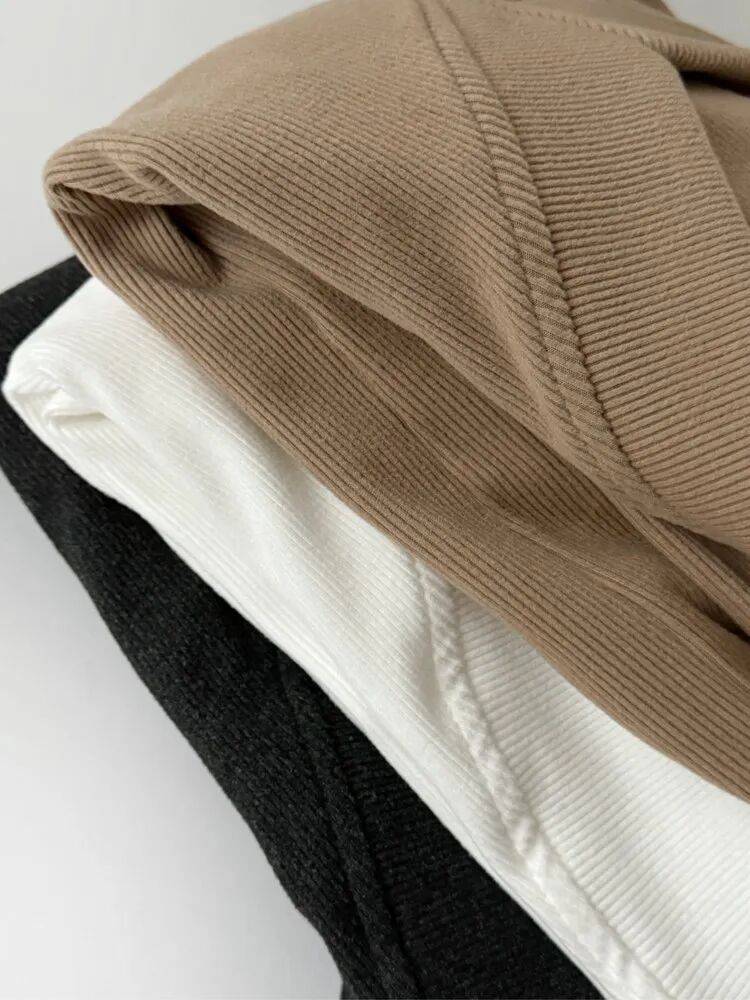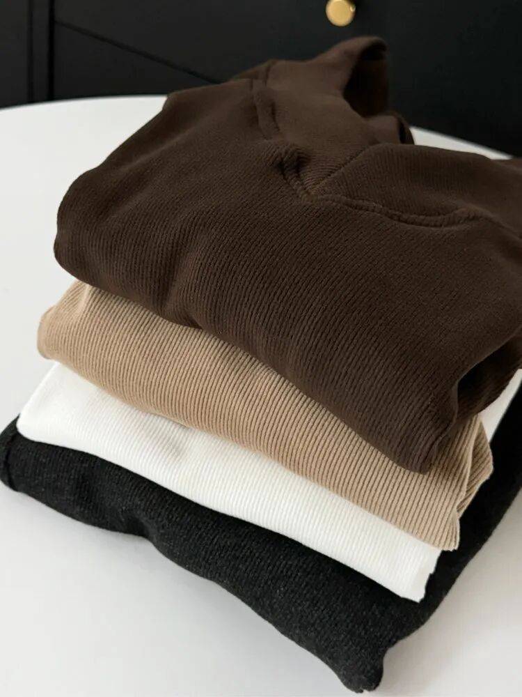没有花里胡哨的设计,简约大气温柔妩媚,版型正面料好弹性大,磨毛内里,单穿王者,冷一些内搭气质王。