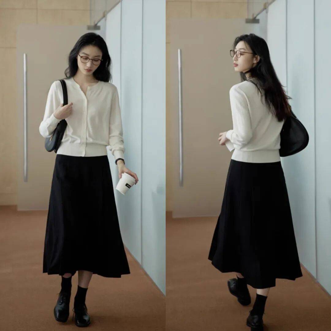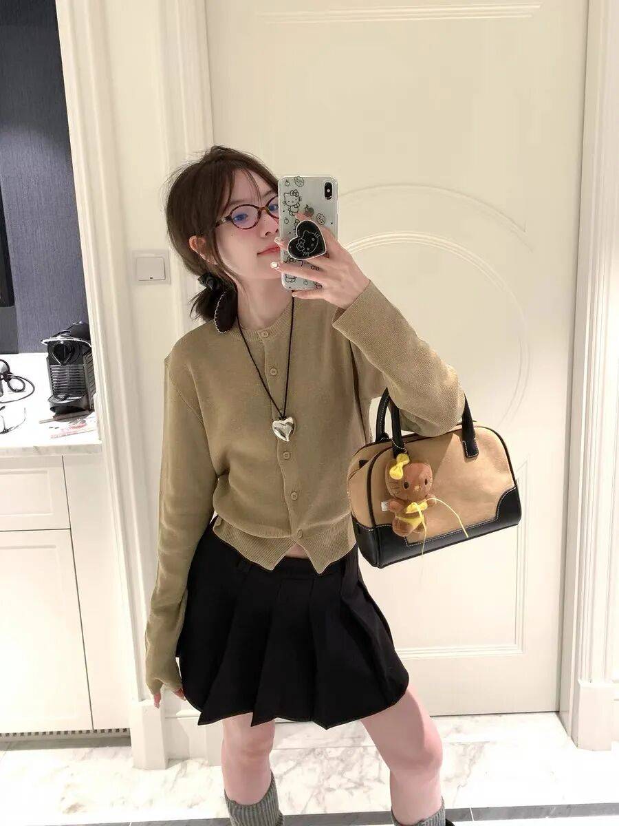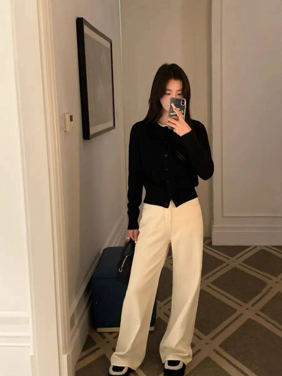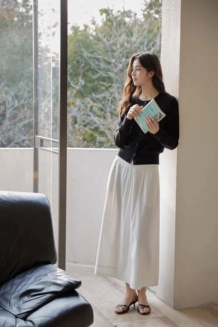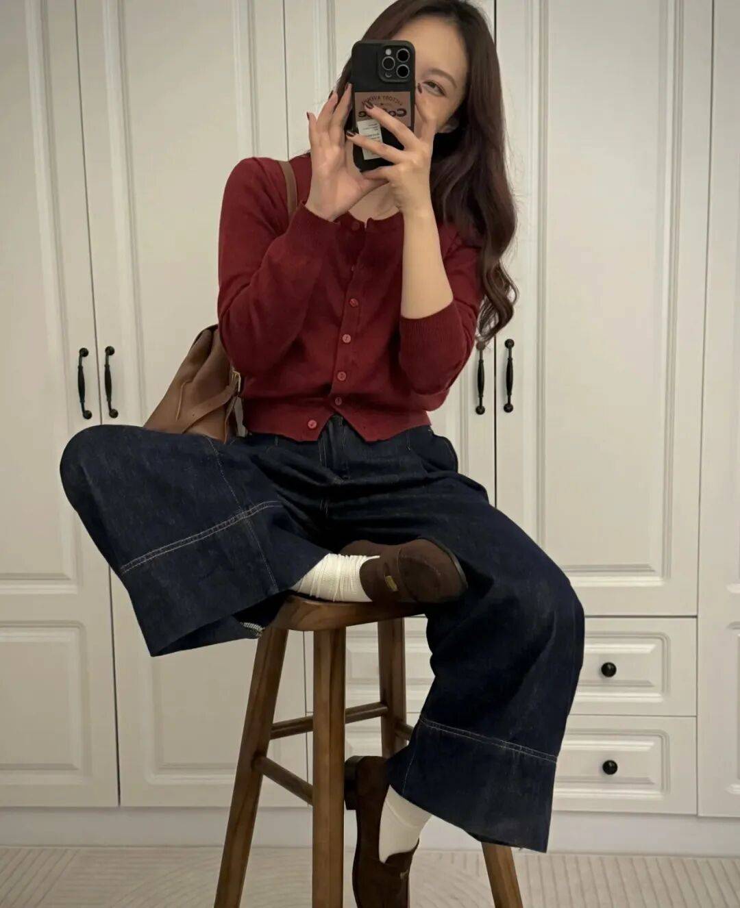 而且针织小开衫,真的很容易穿出那种韩系大姐姐的温柔风,斩男又斩女。