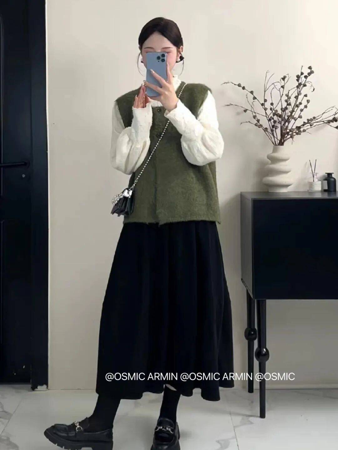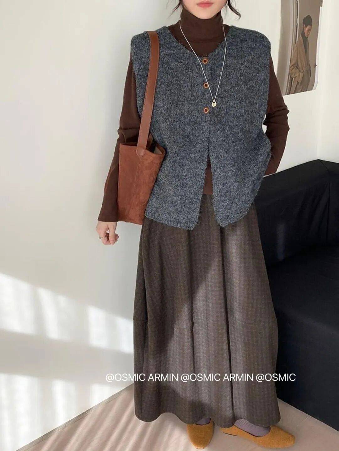 尤其搭配半裙或者阔腿裤,这种穿搭走在落叶纷飞的街头,或者在暖呼呼的咖啡馆里,真的氛围感爆棚好嘛!感觉自己就是从日系杂志里走出来的森系女主。