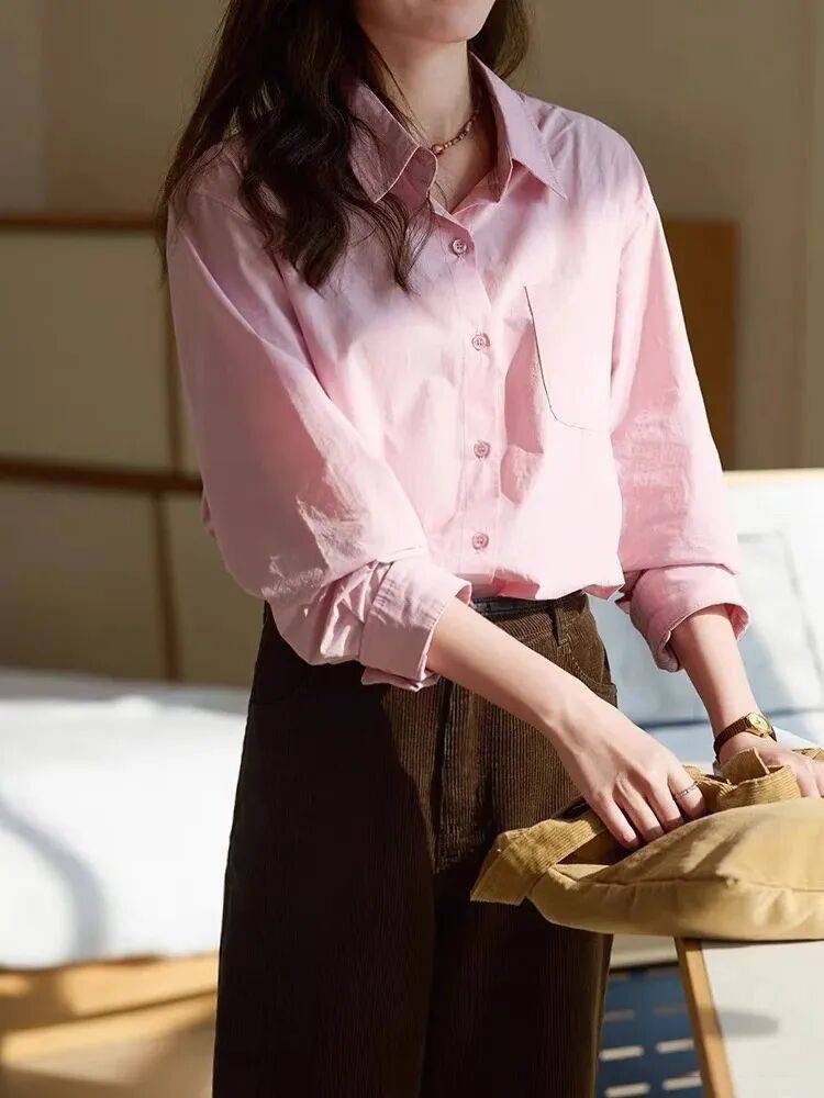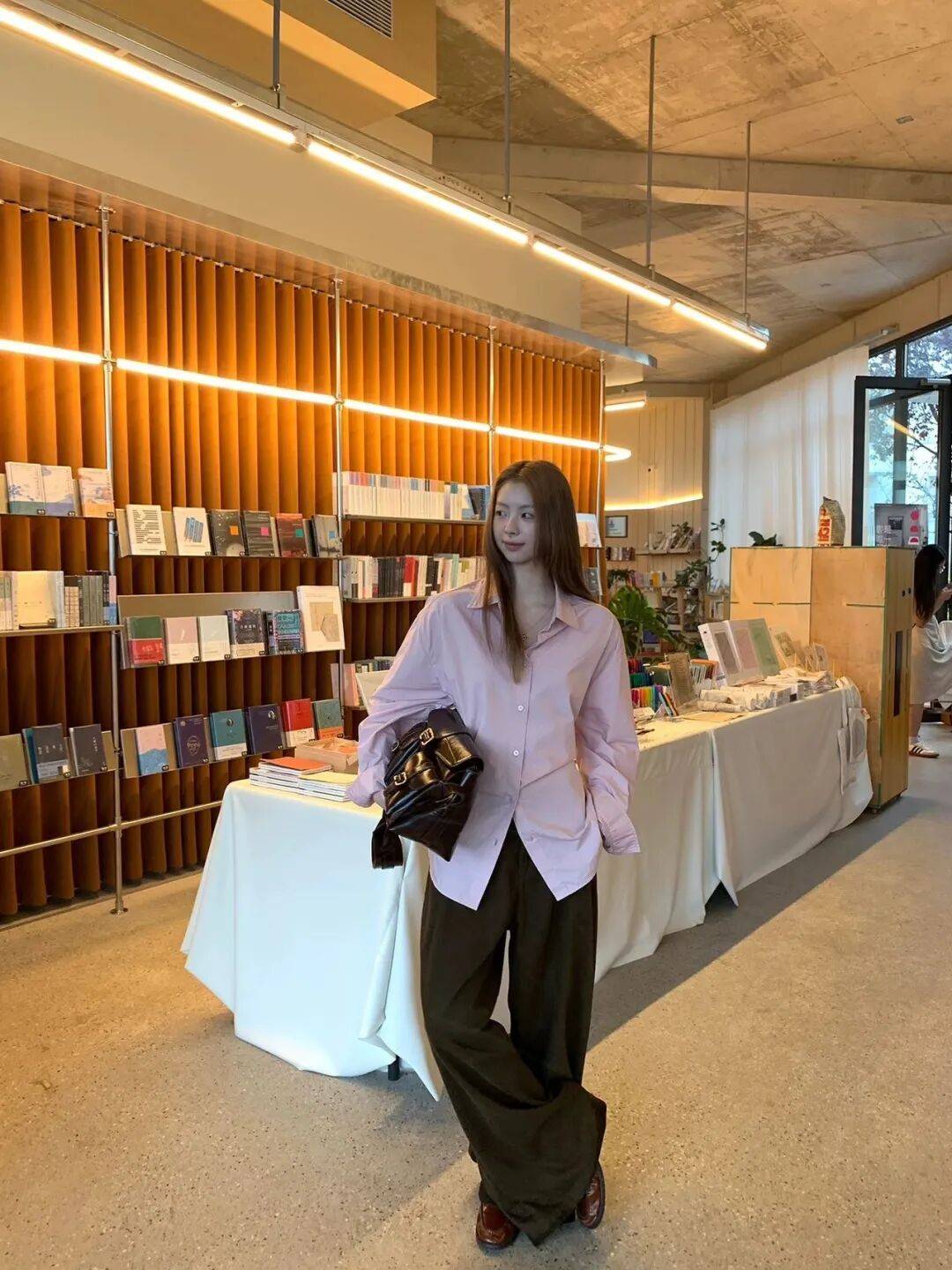 高智感通勤必备!显瘦遮肉+高级松弛感,100%新疆棉软到心坎里,再加上这个神仙肉雾粉,韩系慵懒风拿捏了,谁穿谁好看啊这件!