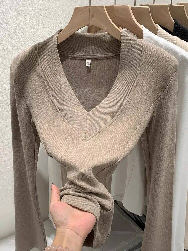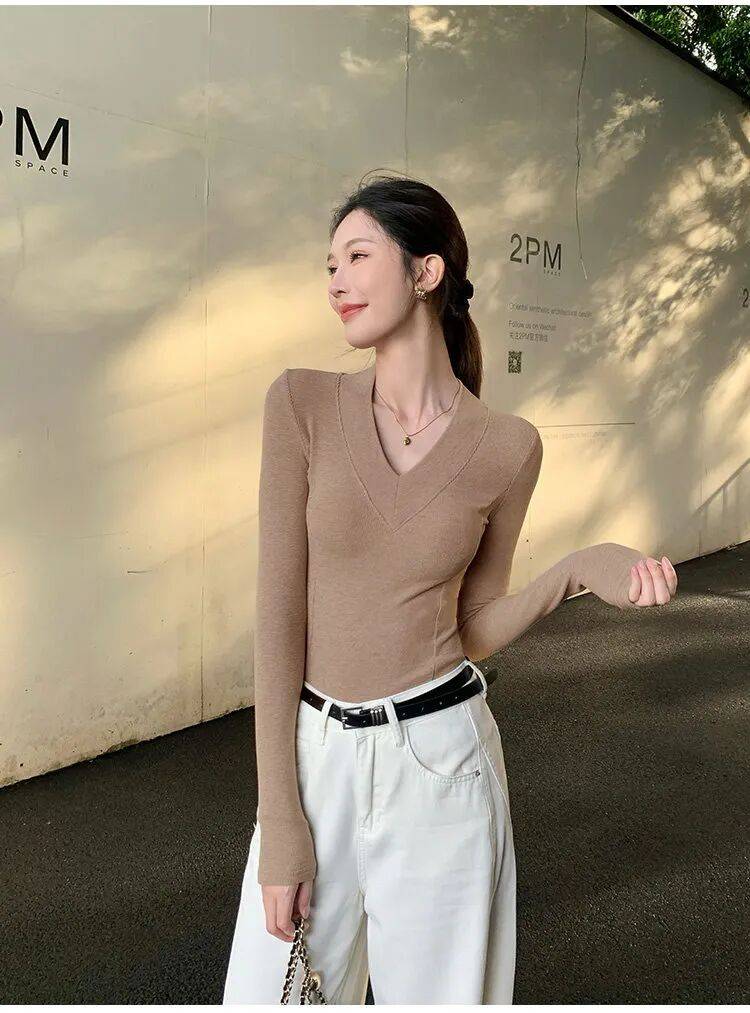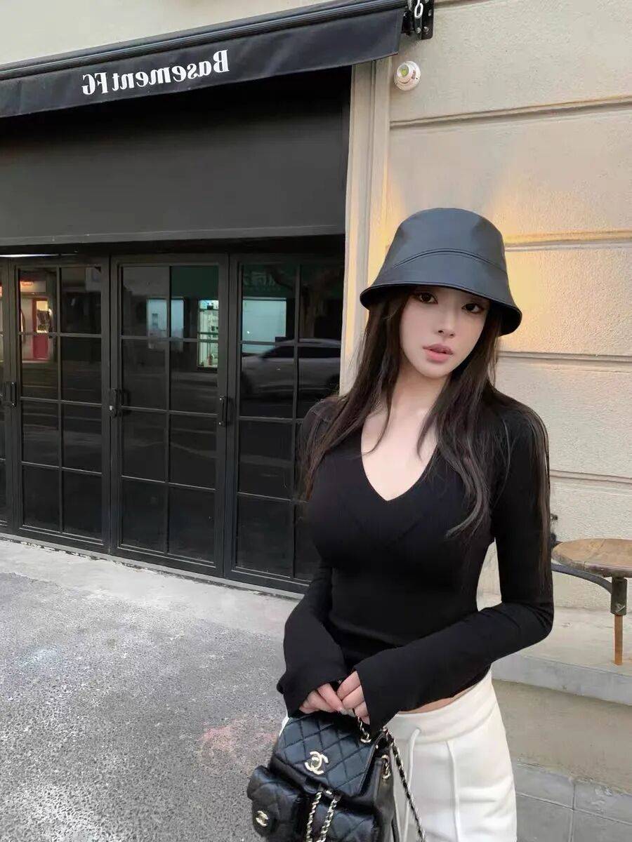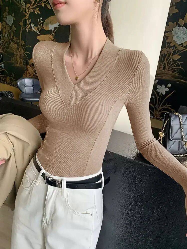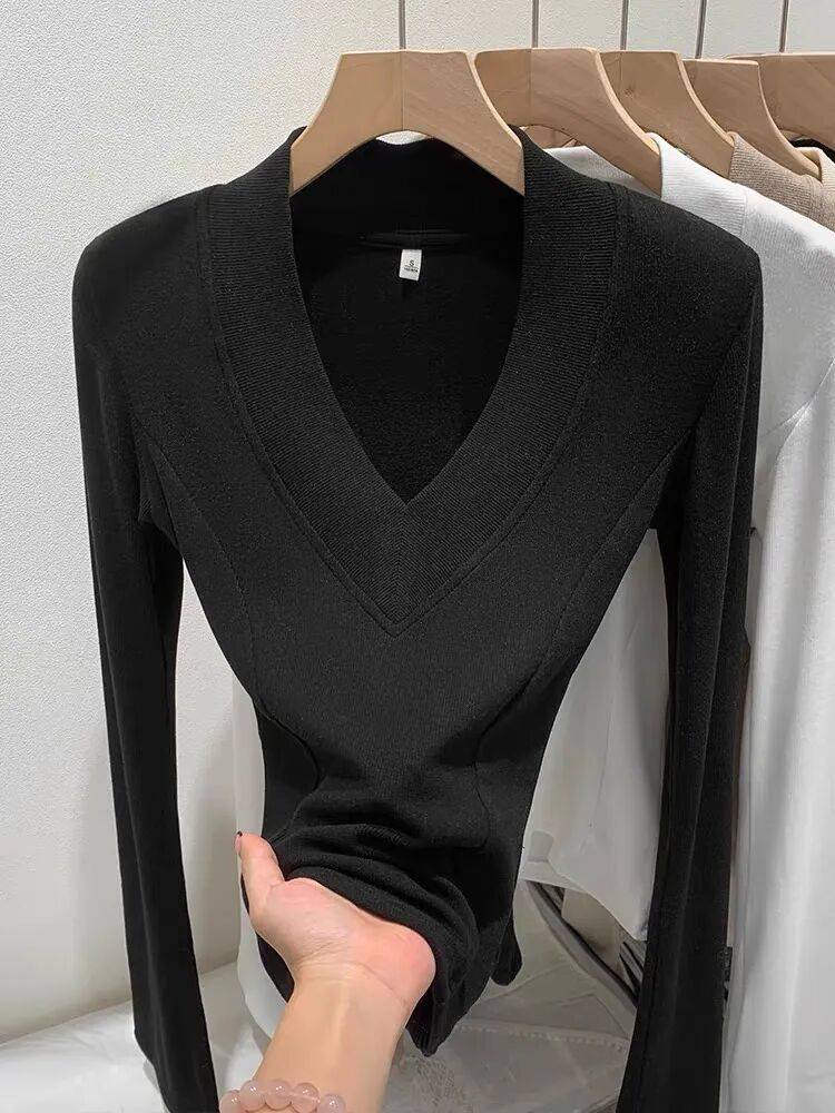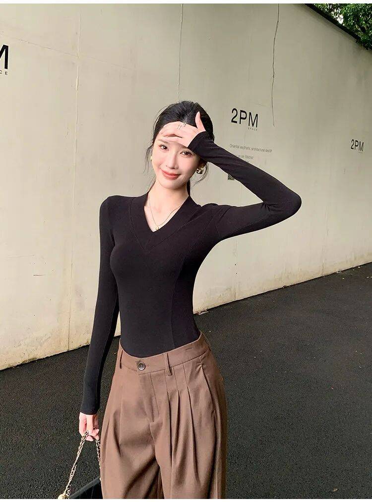 大V领的设计凸显锁骨,显颈长显脸小,凸显小V脸,真的超显瘦显轻盈,秋冬内搭也没那么沉闷。