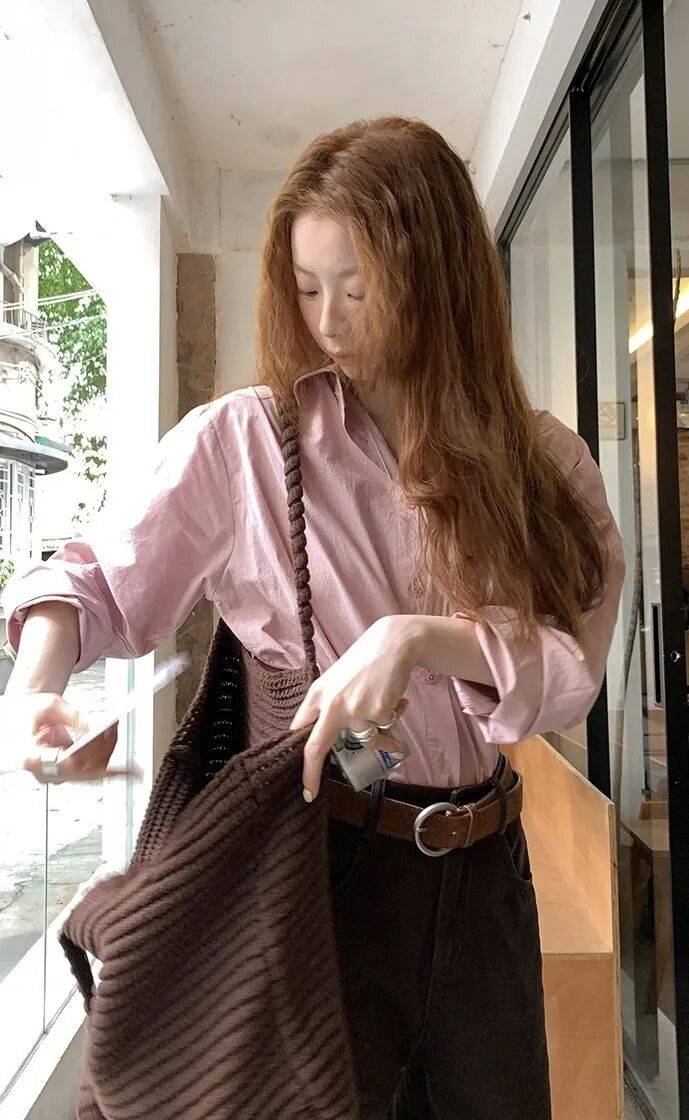 姐妹们,在秋日一众黑白灰之中,我们买手团队给大家找来了一件秋日氛围感天花板——isabellemarran高智感烟粉色气质衬衫。