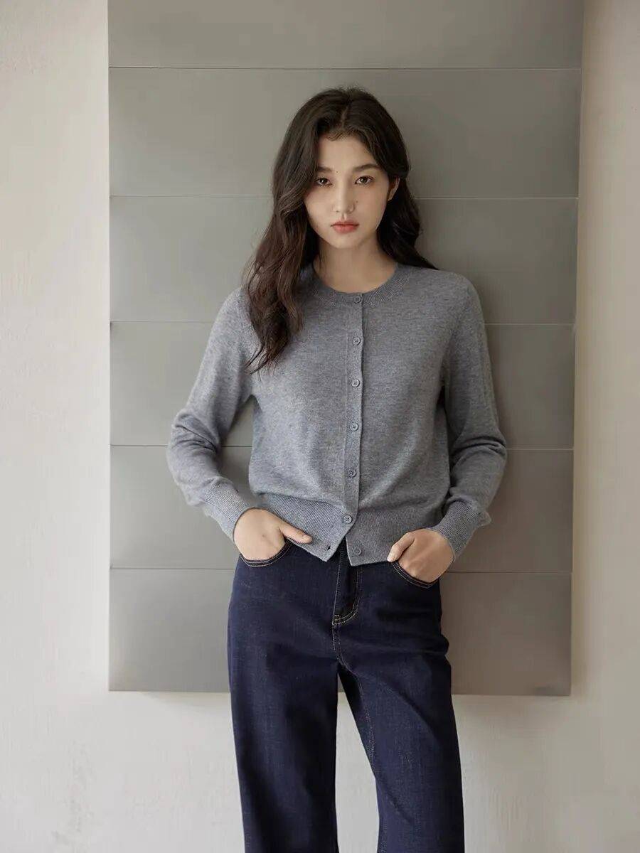 在对比了二十多件后,终于找到了这件伊泺杉出口韩国原单开衫,穿一次就想把它“焊”在身上!