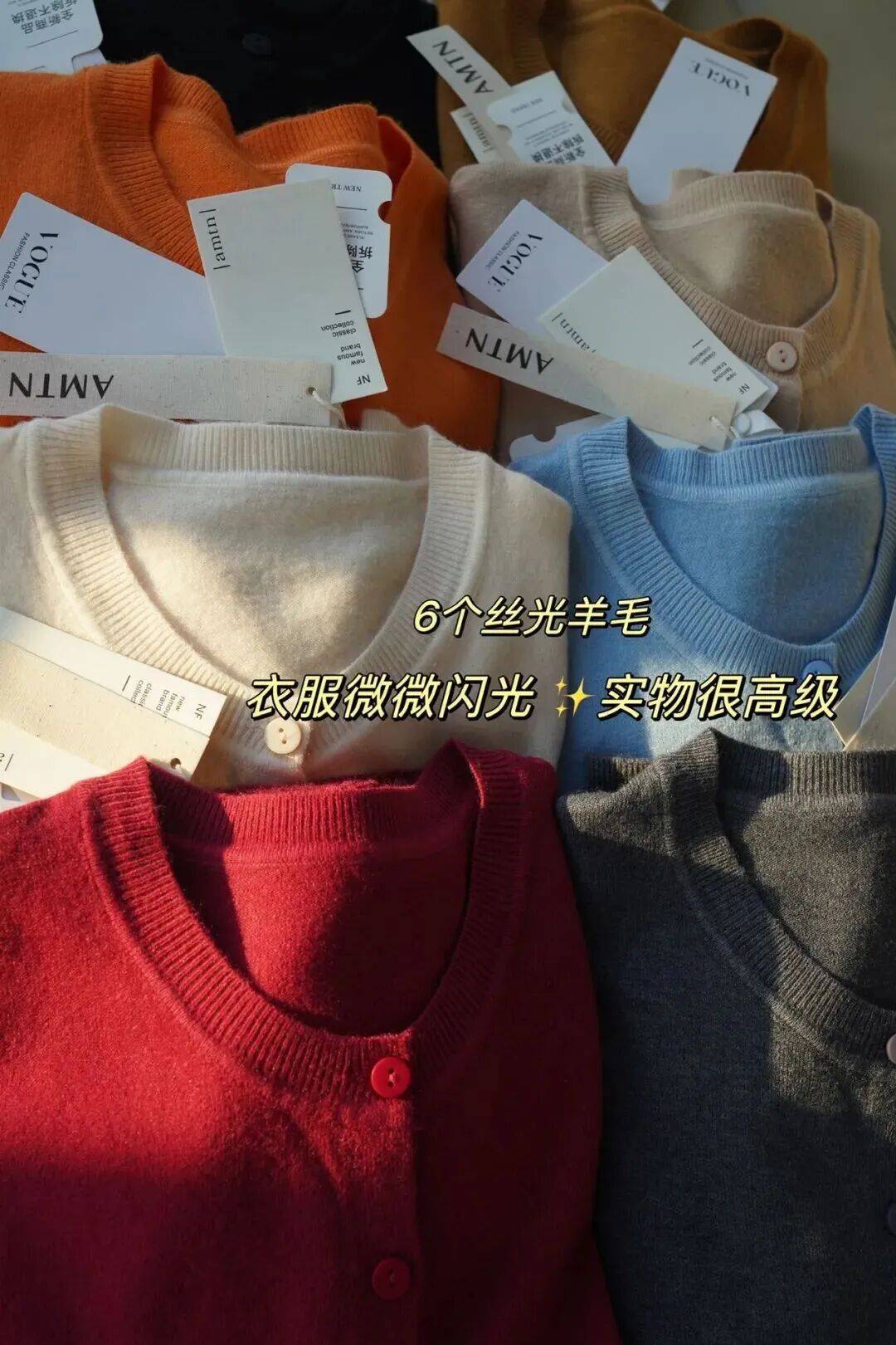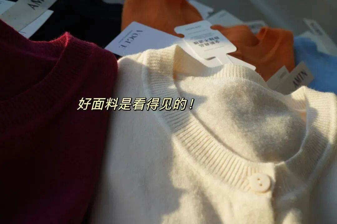 捏在手里厚实但不笨重,贴身穿软乎乎的,没有那种廉价开衫的 “扎皮肤” 感。