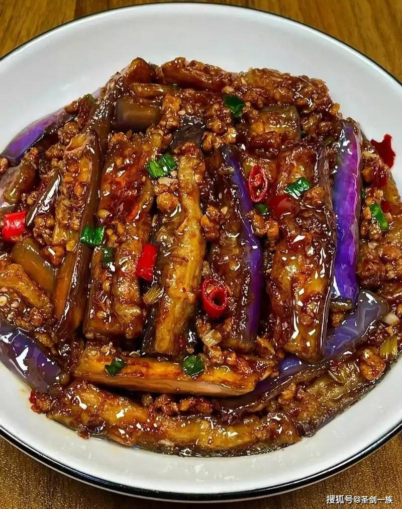 材料:茄子、猪肉末、蒜、生抽、老抽、淀粉、盐、食用油