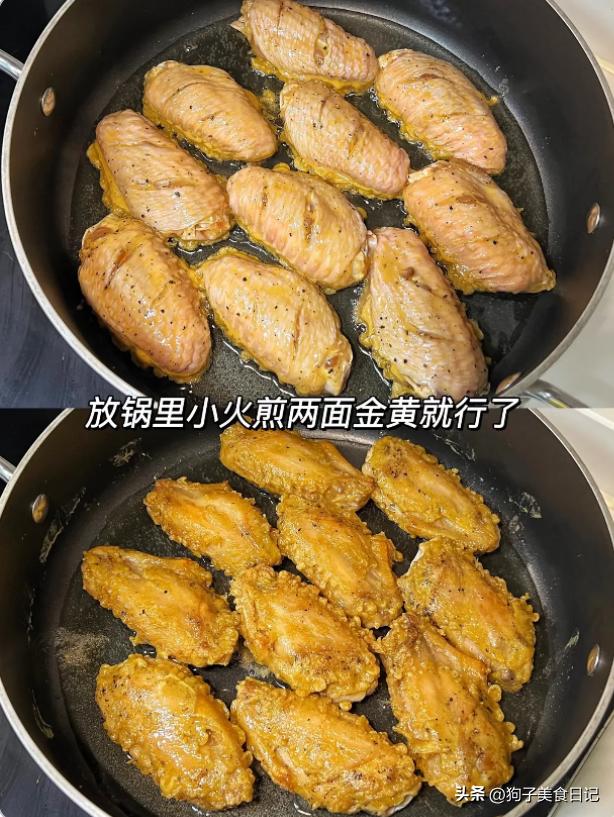 香煎鸡翅 材料:适量鸡翅,2勺料酒,2勺生抽,1勺蚝油,半勺黑胡椒粉,一个鸡蛋,2勺淀粉。