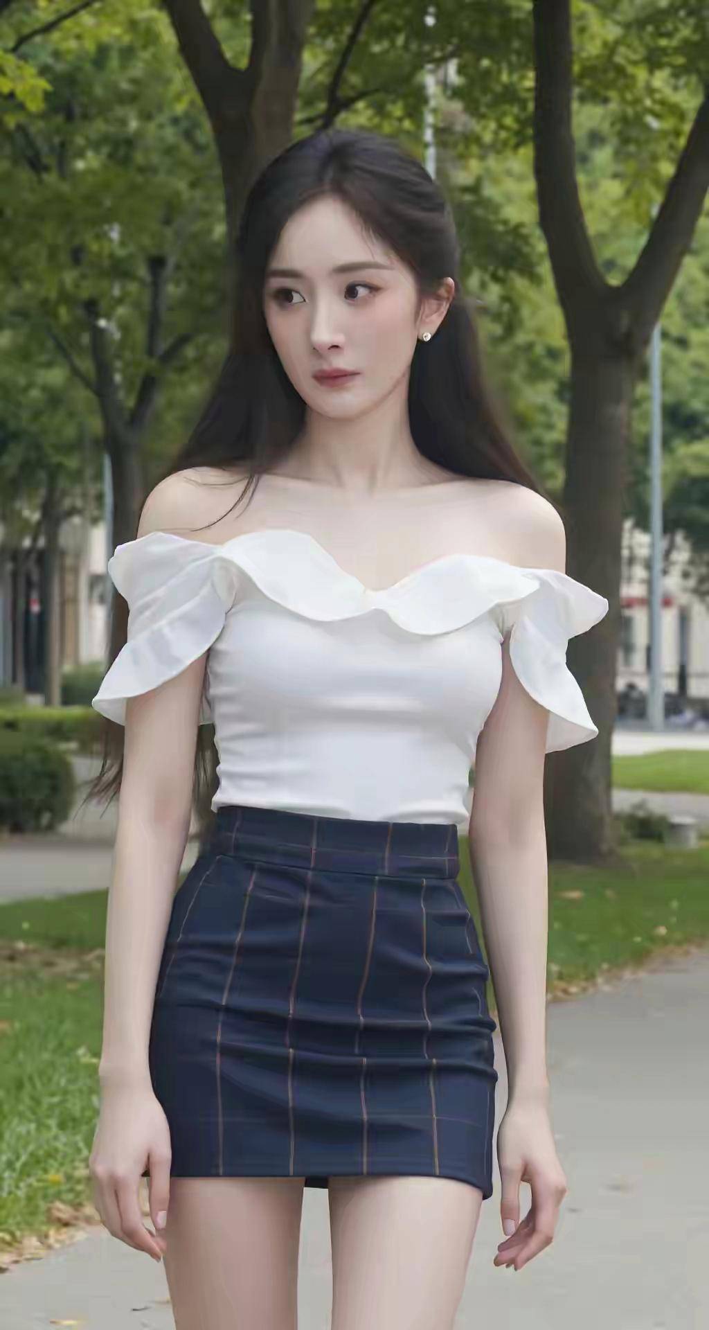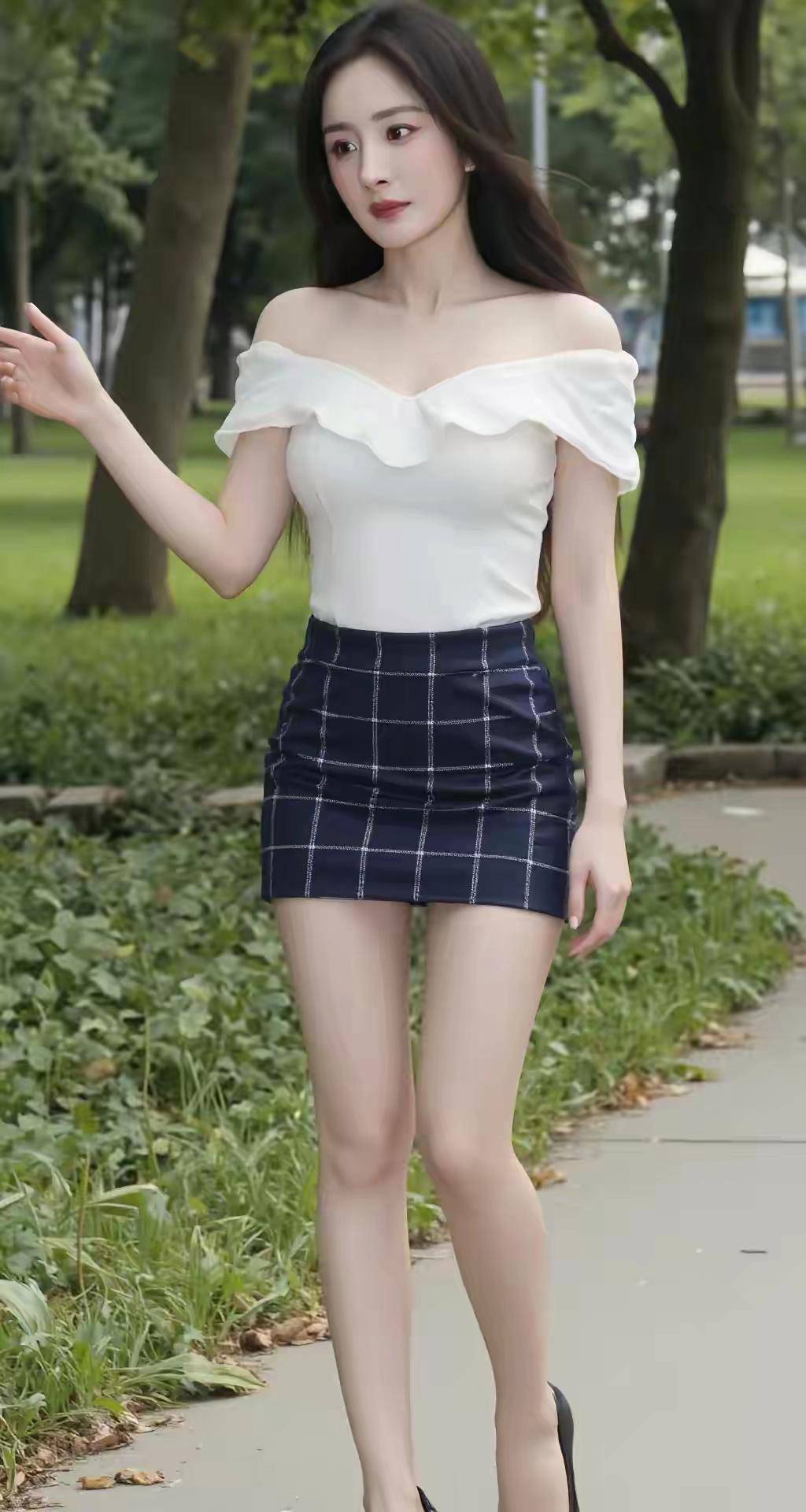 杨幂此次街拍造型堪称一场视觉盛宴,巧妙融合了性感与优雅的双重魅力。她身着一件纯白一字肩上衣,如月光般皎洁的面料在阳光下泛着珍珠光泽,不对称的剪裁设计宛如希腊女神雕像般充满艺术感,将精致的锁骨线条和圆润肩头展露无遗。这件one-shoulder上衣的立体褶皱处理仿佛流动的瀑布,在行走间荡漾出迷人的光影波纹。 下身搭配的格纹包臀短裙堪称造型的点睛之笔,经典苏格兰格纹与现代bodycon剪裁碰撞出摩登火花。高腰设计如同精密的黄金分割线,将身材比例修饰得近乎完美。裙摆长度虽大胆却恰到好处,在行动间若隐若现的腿部线条,宛如芭蕾舞者般优雅灵动。格纹图案的黑白交织仿佛钢琴琴键,奏响时尚的韵律篇章。 整套造型在危险边缘游走的裙长设计,恰似走钢丝的艺术表演,既展现了杨幂对时尚的大胆诠释,又彰显其精准的尺度把控能力。当微风拂过裙摆的瞬间,她以艺人特有的镜头感将其转化为动态的艺术画面,每一个定格都堪比时尚大片的精彩瞬间。这身搭配完美诠释了当代都市女性自信洒脱的时尚态度,将街头变成了个人秀场。 杨幂:她身材气质可太绝了 家人们,今天必须来好好唠唠杨幂,她在身材和气质这块儿,那简直就是“神级存在”,直接赢麻了好嘛!每次看到她,我都忍不住感叹:这女人到底是怎么做到把身材和气质都拿捏得死死的呀?