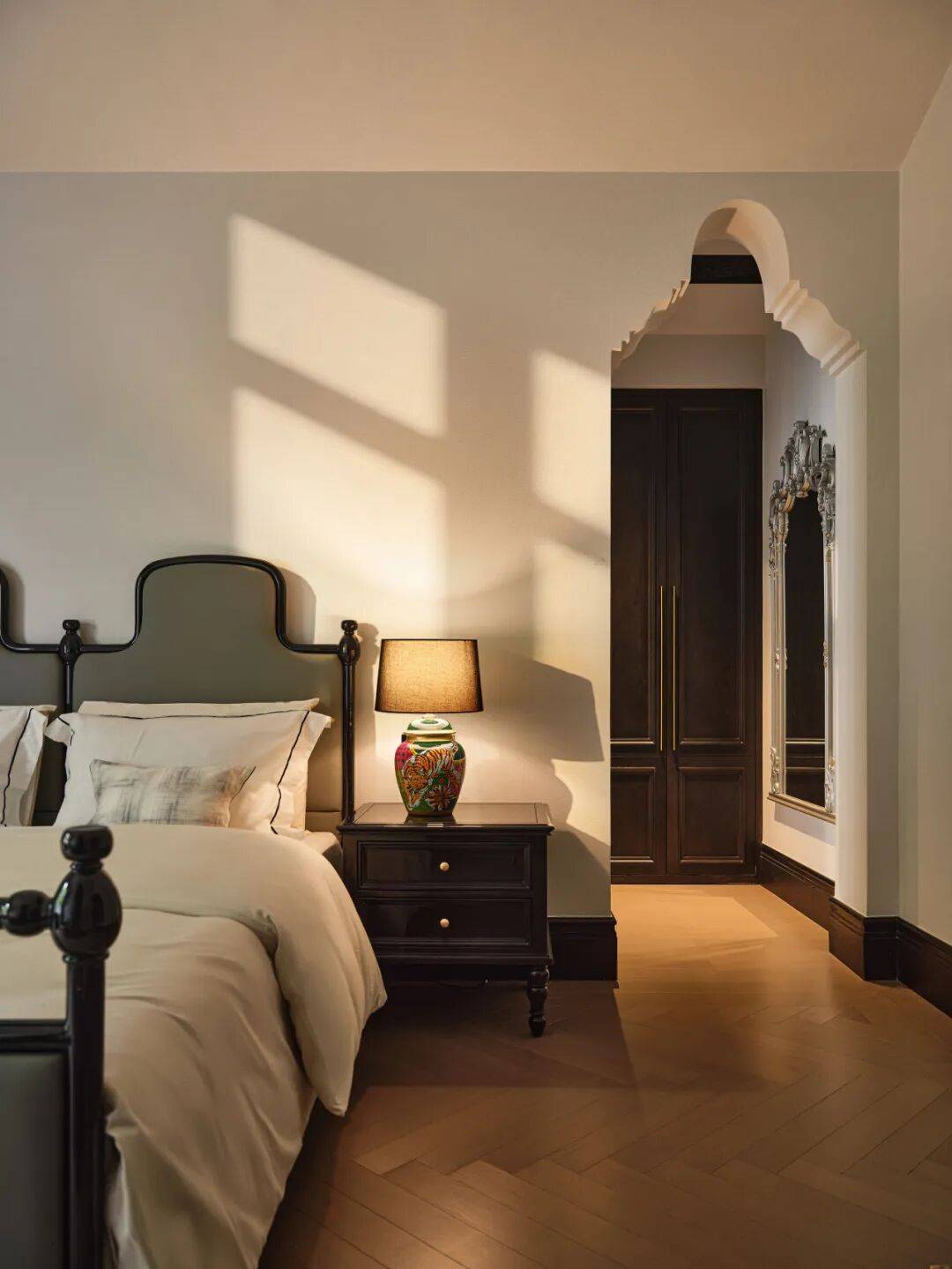 03. 空间是一首看得见的诗 在这个项目中,我们试图打破风格的边界。西班牙不只是热情,老洋房也不只是怀旧——它们都是时光的艺术,都是生活的诗歌。 墙面的手工痕迹、实木地板的温润、铁艺灯具的纤细……每一种材质都在呼吸,都在诉说。大地色为基调,像是调色盘上的一场南欧之旅,却又带着上海梧桐树下的朦胧滤镜。 我们设计光,也设计影。拱门下的斜阳、百叶窗前的晨曦、吊灯下的暖黄……每一刻的光,都在重新定义空间的情绪。