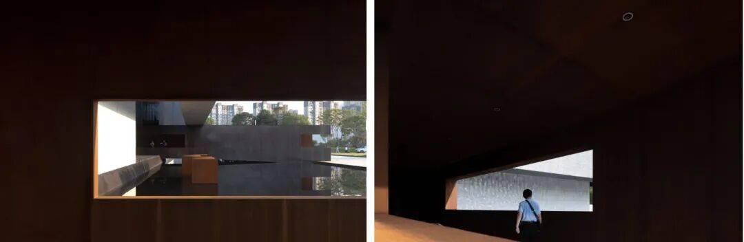 人在这里能够感受与自然的联结,享受观展间隙片刻的放松,或是组织一些仪式性的公众活动。通过宽敞的柱间、墙壁的洞口,人可以感知到空间向四周延展流动,准确把握空间的向度。与传统线性流线的展陈空间相比,“透明”的空间组织会减弱游客对未知里程的焦虑,减轻大型展览游览的负担。针对灵活发散式的空间布局,缺少墙体限制的展陈形式也可以摆脱串联式的展厅模式,更加多变。
