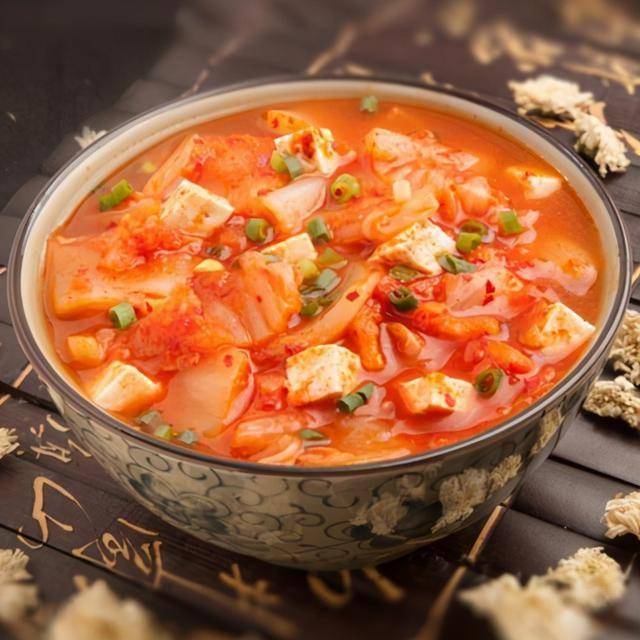 食材:辣白菜、豆腐、金针菇、胡萝卜、香菇