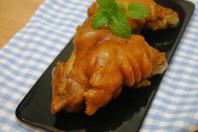 做法将猪蹄洗净后从中间劈开,沸水烫后刮去浮皮,再次将剩余的毛拔去清洗洗净;