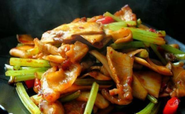 食材: 杏鲍菇250克、五花肉70克、芹菜100克、生姜2片、大蒜2瓣、小米椒2个、郫县豆瓣酱1大勺、生抽2小勺、糖1小勺;