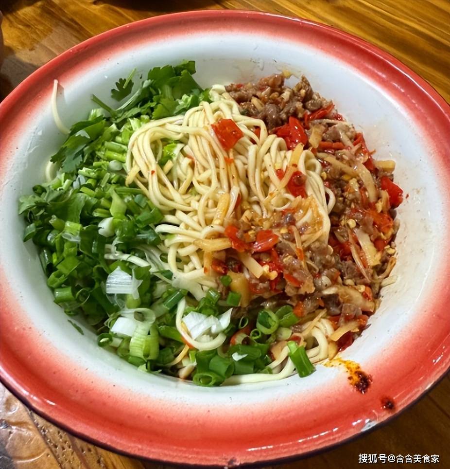 生椒牛肉面以鲜椒牛肉臊子为特色,辣味纯粹且劲猛,不同于红油为主的川味面,其辣感来自大量新鲜小米椒与牛肉丝炒制的臊子,辣度较高,吃后易满头大汗,但香气扑鼻,令人“吃一口就停不下来。面条多为碱水面,口感劲道,能很好裹住辣臊。价格亲民,普遍在8-13元一碗。对于嗜辣者是“过瘾”的美味,但不建议不能吃辣的人轻易尝试。搭配冰镇甜汤可缓解辣感,提升体验。 8.锅盔夹凉粉
