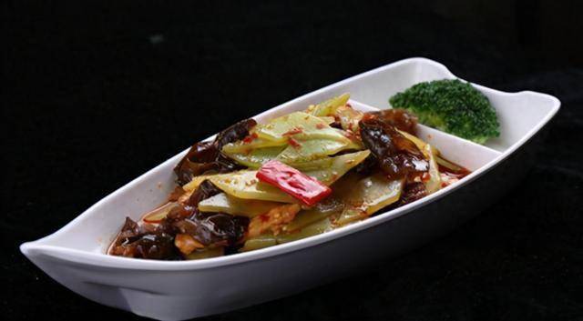 4. 放莴笋断生,再放入木耳,翻炒均匀