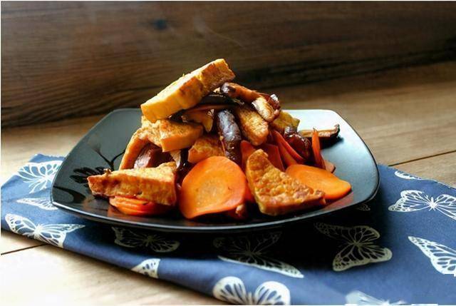 材料: 北豆腐、香菇、胡萝卜、生抽、盐;