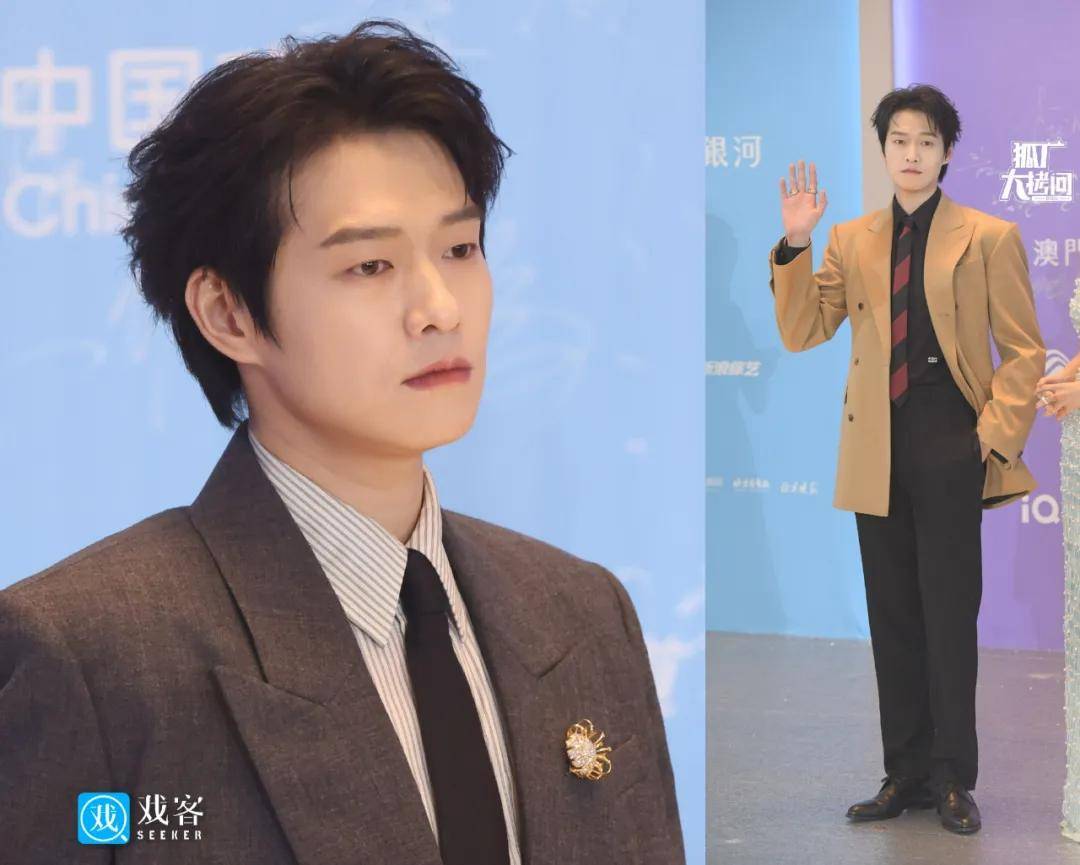 丞磊化身雅痞贵公子,大背头龙须发型把五官勾勒得格外立体,白围巾的搭配又恰到好处,整个造型优雅绅士,在红毯上温润如玉,确实能让人过目不忘。