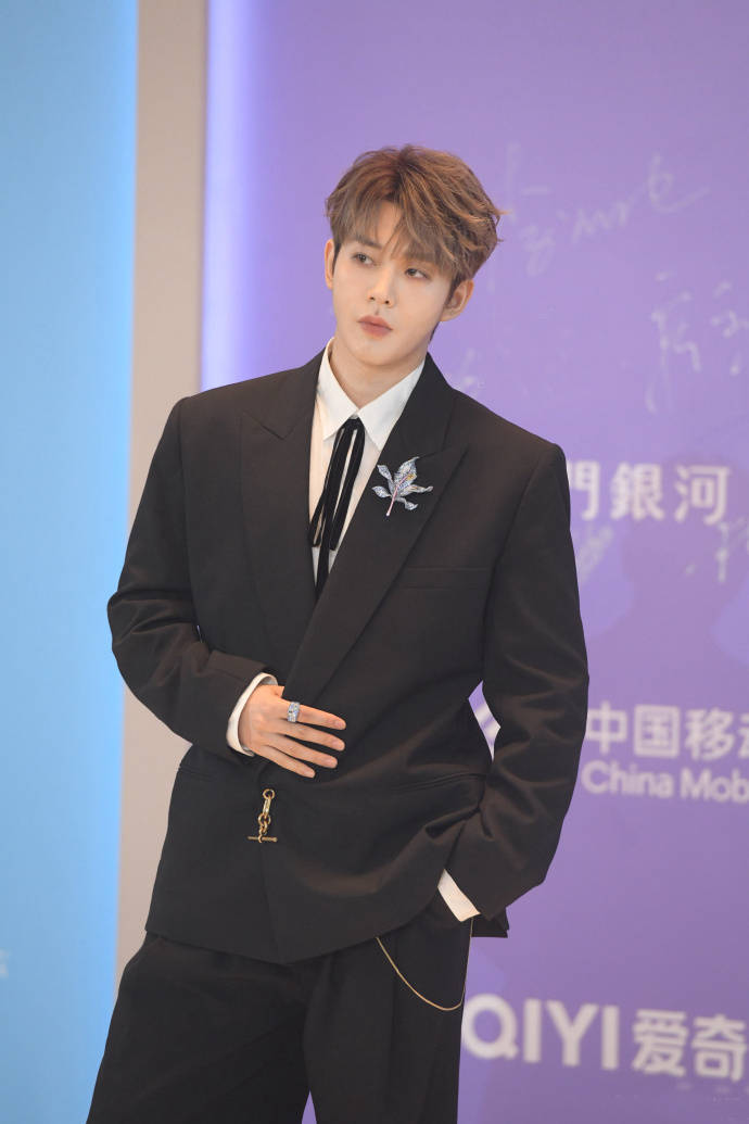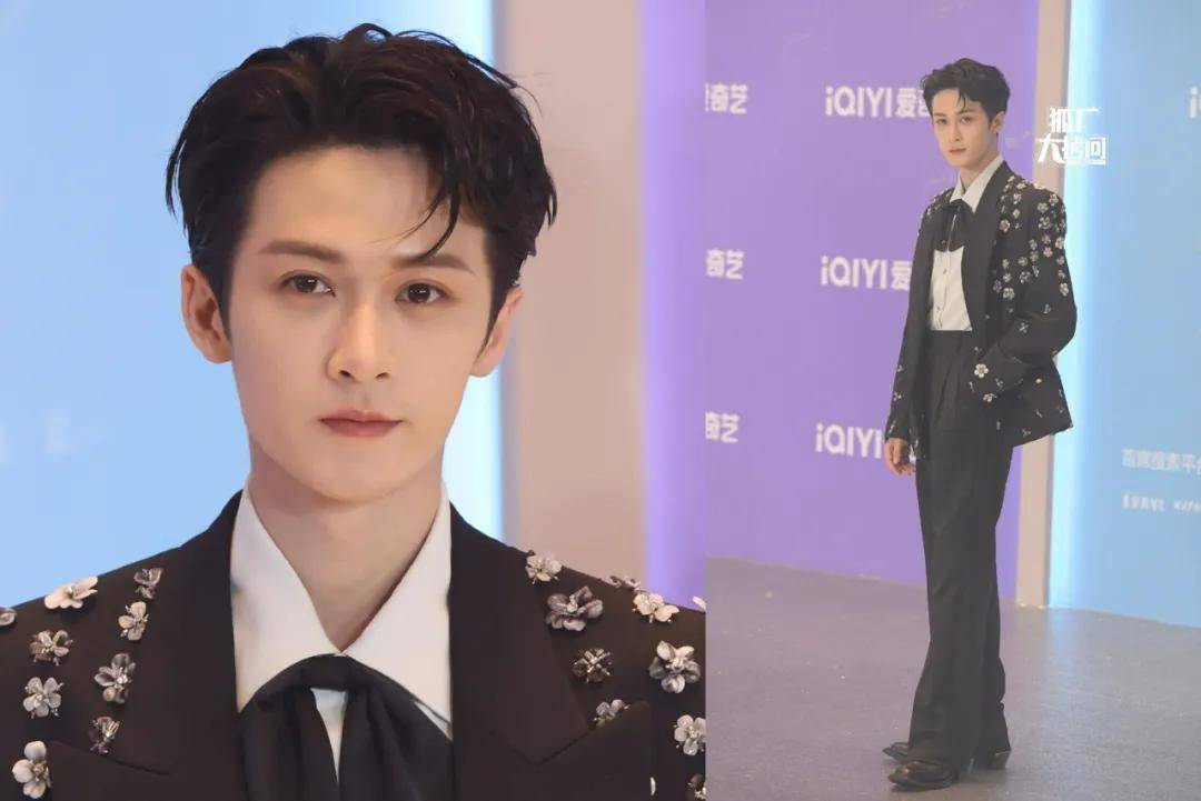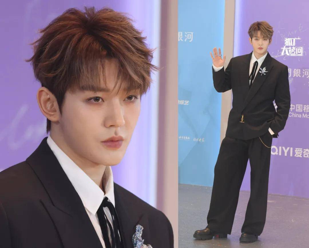 张凌赫穿了一套缀有亮片装饰的黑色西服,简约不失华丽,再加上他身高不输模特,所以会有随便穿穿就很上镜的效果。