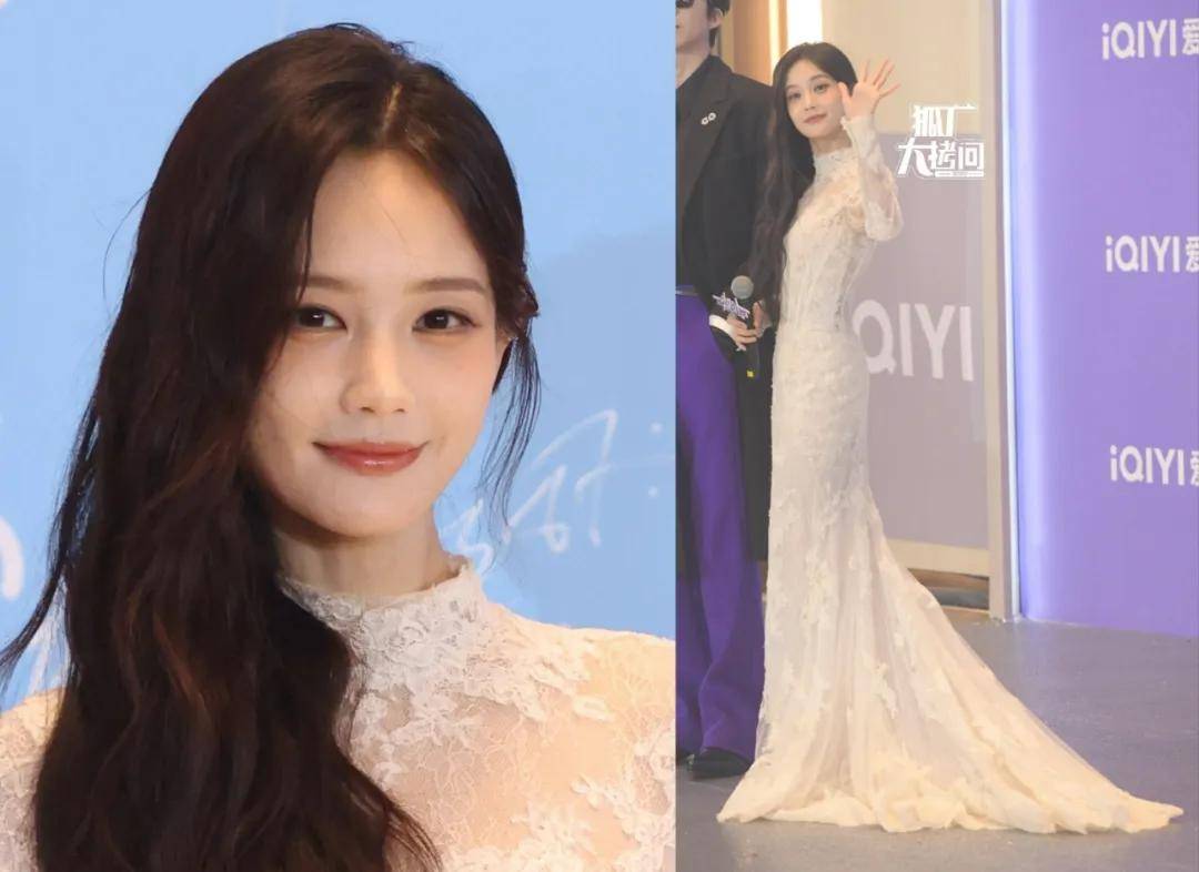 李一桐穿了一条白色蕾丝纱裙,妆发和裙子的搭配其实中规中矩,主要赢在颜值出众。
