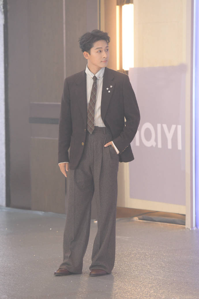 张晚意穿了一套棕色西服,比起男明星走红毯,他更像是乖学生隆重打扮出席毕业典礼。