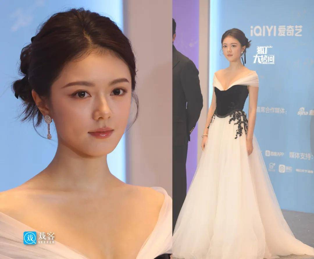 赵今麦的红毯造型难得没有乱搭,是一条简约大气的黑白纱裙,简简单单就很好看,生图完全不输精修图。