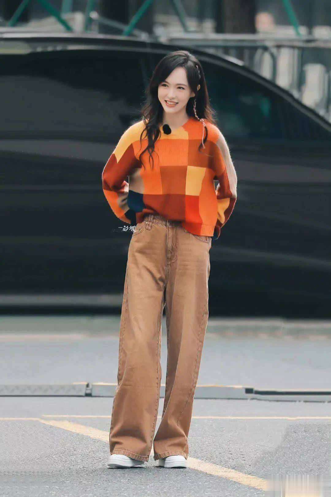 她的穿搭也十分引人注目。唐嫣穿了一款红色和橘红色拼接的毛衣,散发出浓厚的节日氛围,给人一种温暖、喜庆的感觉。这种暖色调不仅让人看起来更加明亮,也能衬托出她的肤色,显得特别有光泽。毛衣的设计是宽松版型,袖子也设计得比较宽大,这样反而更能突出她娇小的气质。想要让毛衣穿得时尚,宽松大袖无疑是一个不错的选择,毕竟穿上紧身袖或不合身的款式,容易显得土气。